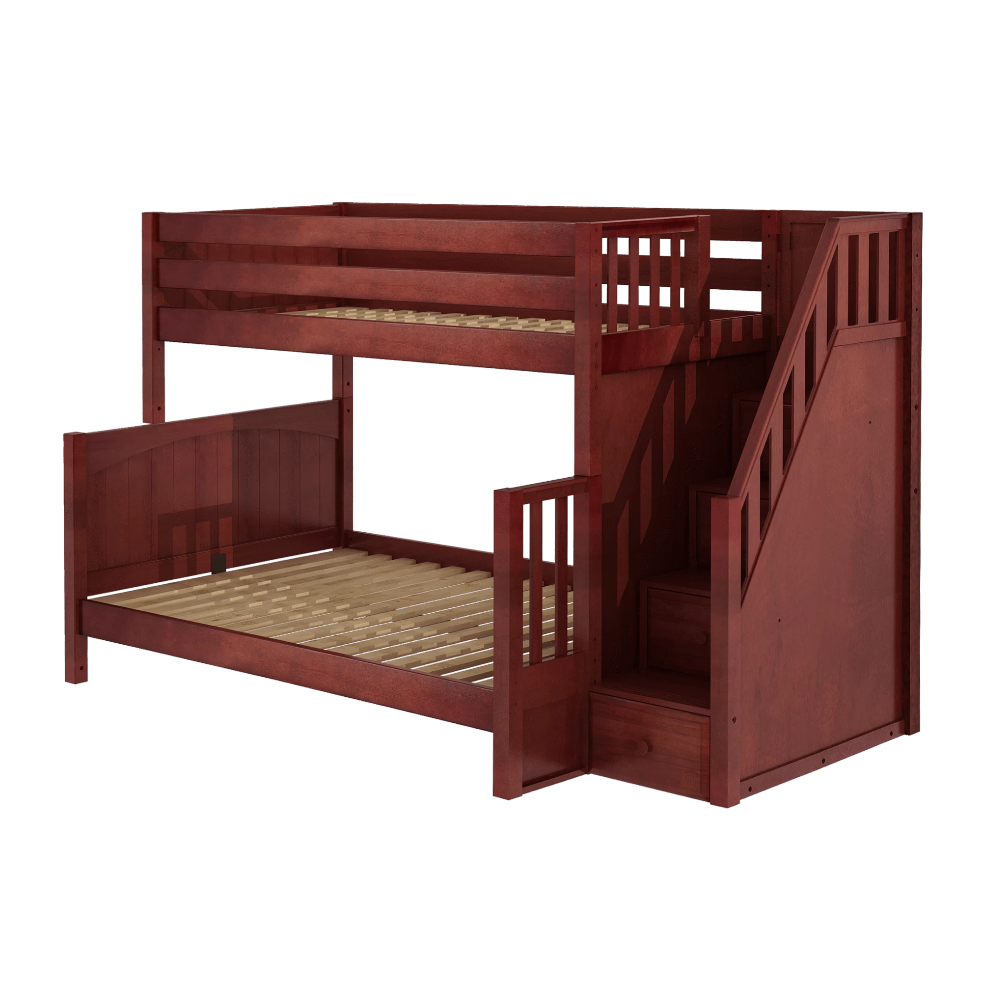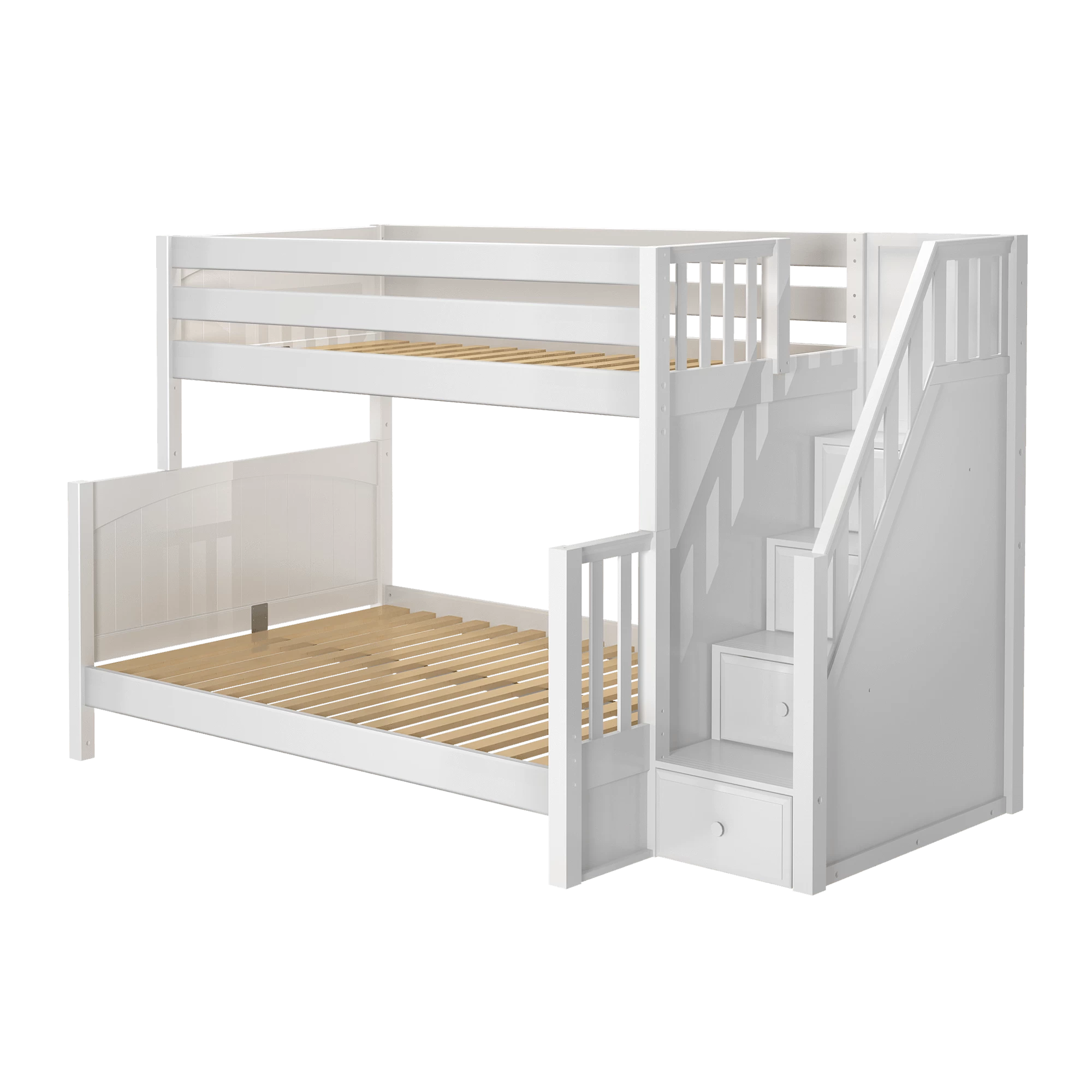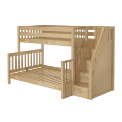 Sleep different sizes and ages comfortably in our twin over full bunk bed with stairs! Full size bed as bottom bunk = extra space for snuggling, sleepovers or adult guests. Staircase is a safe way for young children to climb into bed, plus each step doubles as a storage drawer. A Maxtrix Kids best seller.