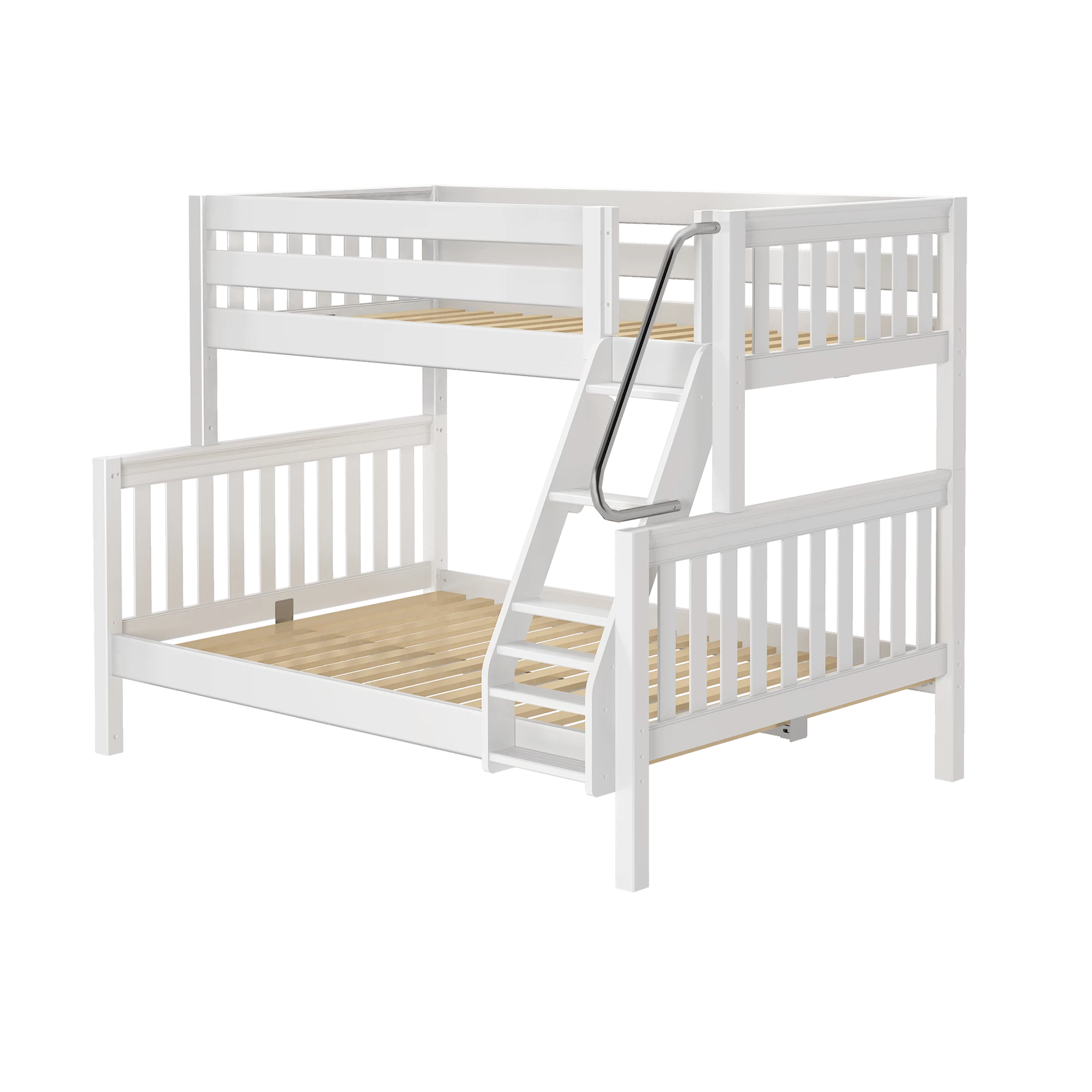 Our classic twin over full bunk bed is the perfect solution for sleeping different sizes and ages comfortably in one room. Full size bed as bottom bunk = extra space for snuggling, stories and sleepovers. Angled ladder attaches to bedside rail for clean finish + allows trundle or underbed storage use.