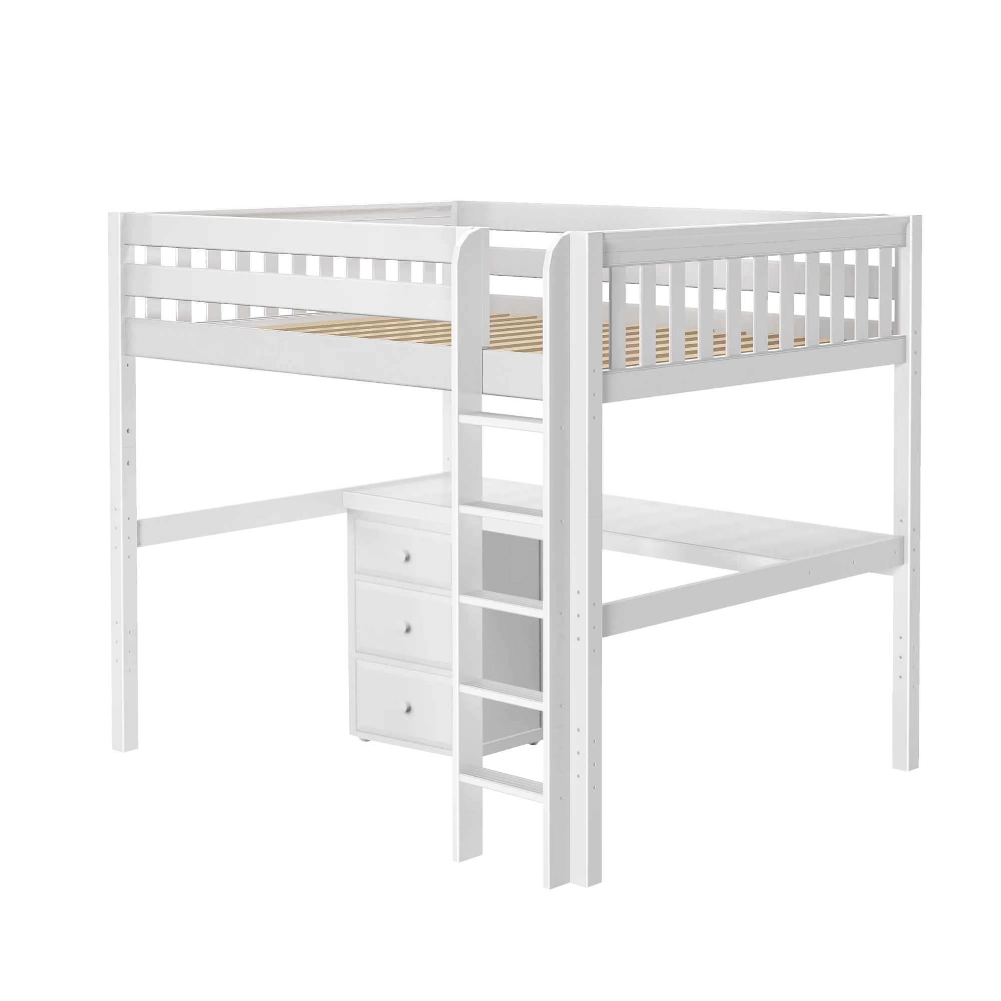 Our high loft with straight ladder becomes the ultimate sleep + study combo! Matching desk attaches directly underneath, freeing up valuable floorspace. Over 4 ft of underbed clearance means even taller teenagers can sit up comfortably. Queen size = extra room for long limbs to stretch out.