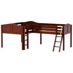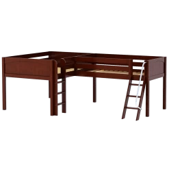 Our low corner loft is just that – two low loft beds connected in a super functional “L” shape that fits perfectly in your bedroom corner.