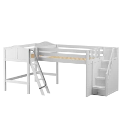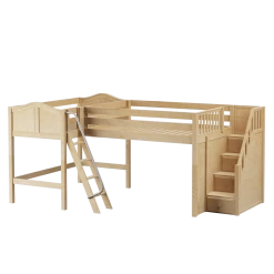 Our medium corner loft beds are just that – two mid loft beds connected in a super functional “L” shape. Designed to fit perfectly in your bedroom corner.