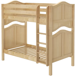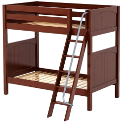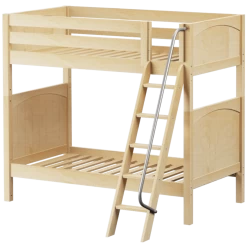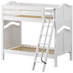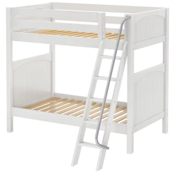 Avoid bumped heads with the Maxtrix high bunk bed! 3.5 ft of space between top and bottom allows teens + adults to sit up comfortably. Two twin beds are stacked using patented Rock Lock system to form one solid unit. Choose space-saving straight ladder or extra-safe angle ladder.
