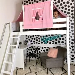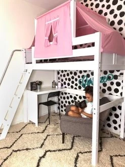 Now paired with our brand new Corner Desk, it makes the ultimate Sleep + Study combo! The Corner Desk is designed to fit at the short end of the loft bed, but can also be arranged along the long back-side.