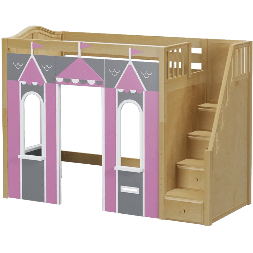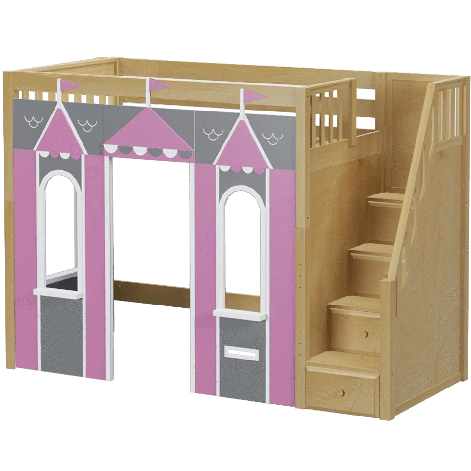 Maxtrix Twin High Loft Bed With Stairs + Playhouse Panels