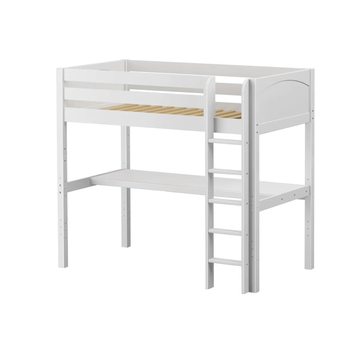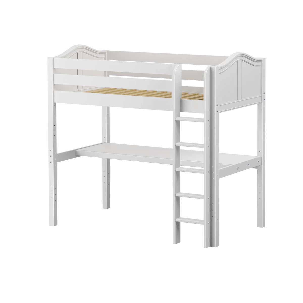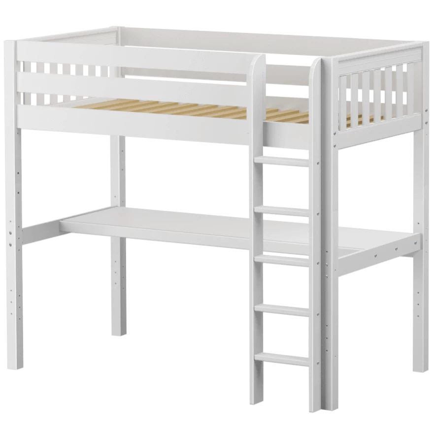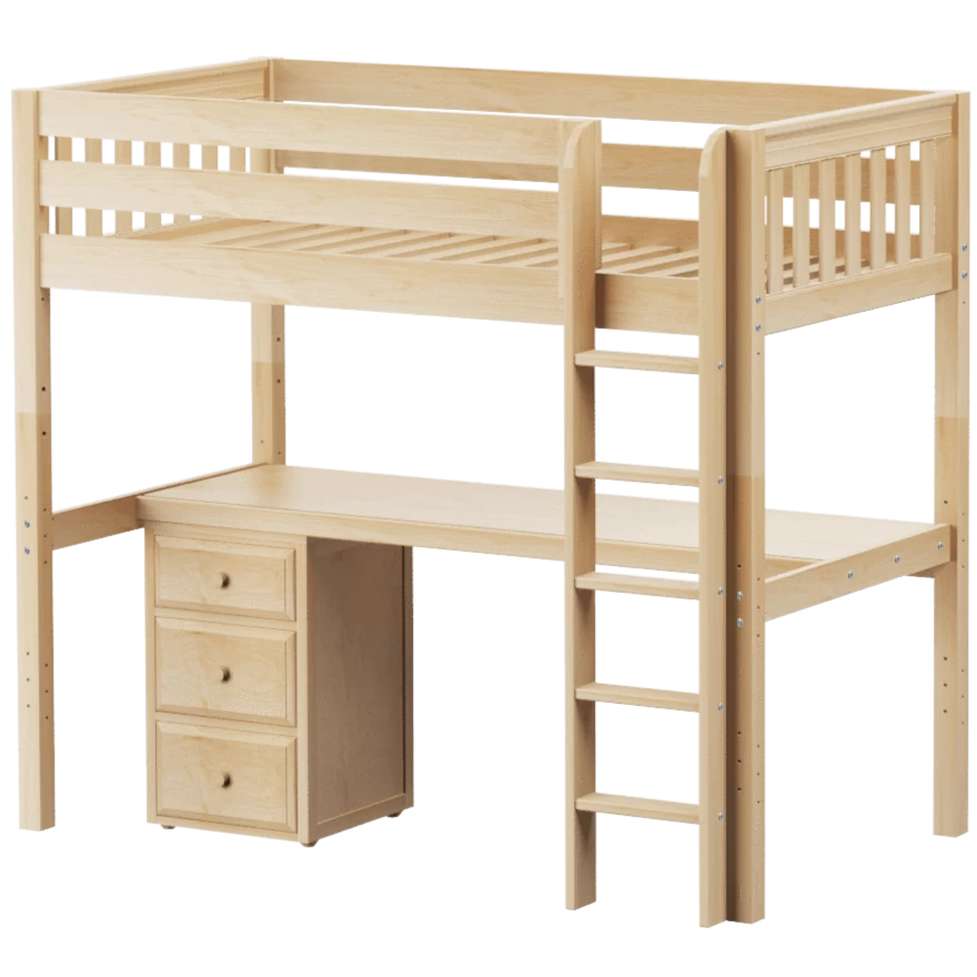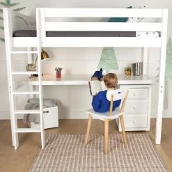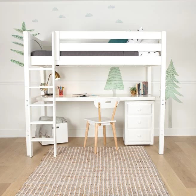 Our classic high loft with straight ladder becomes the ultimate sleep + study combo! Attached matching desk creates a functional spot for schoolwork and frees up valuable floorspace in your child’s bedroom. Over 4 ft of underbed clearance means even taller teenagers have enough space to sit comfortably.