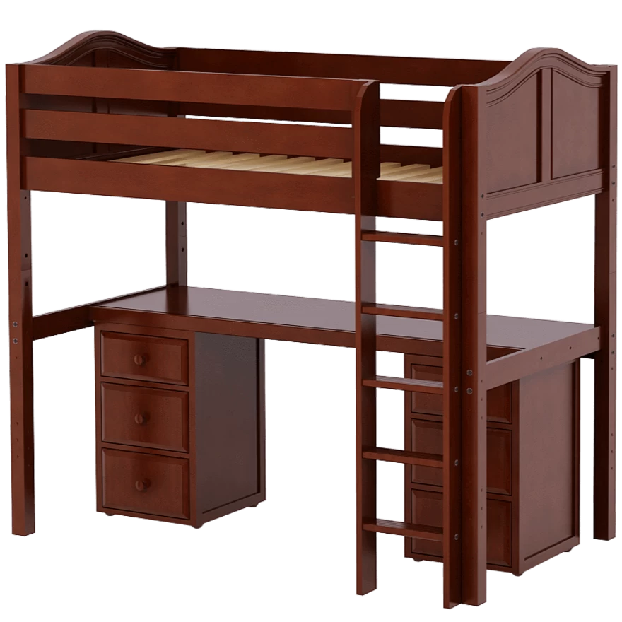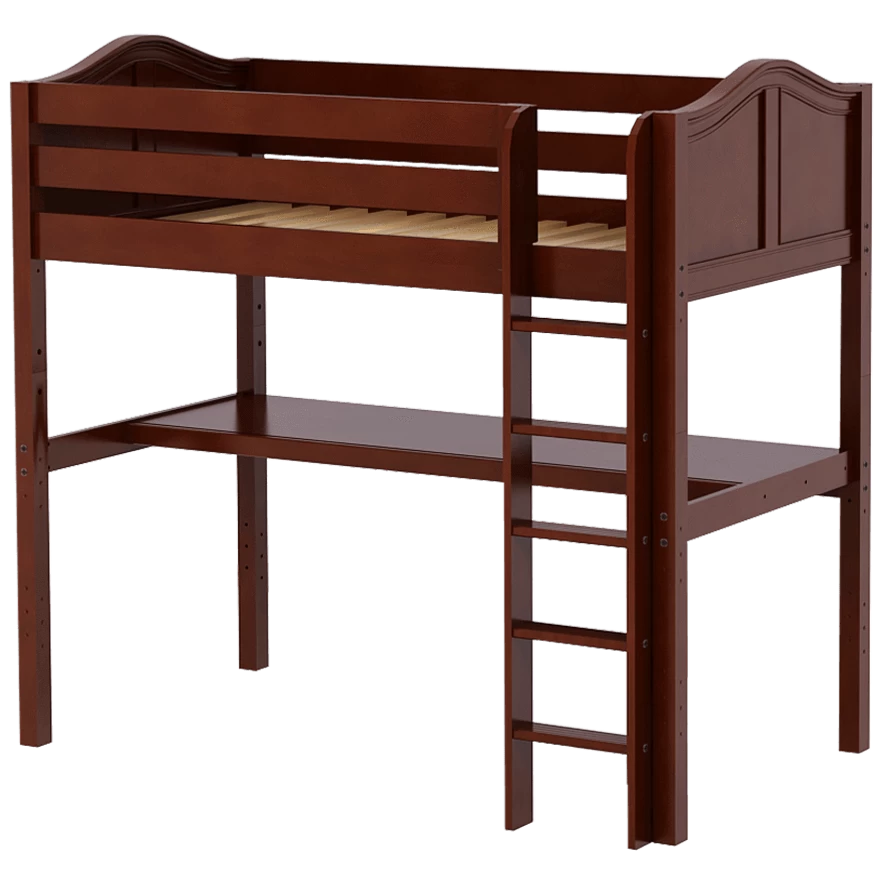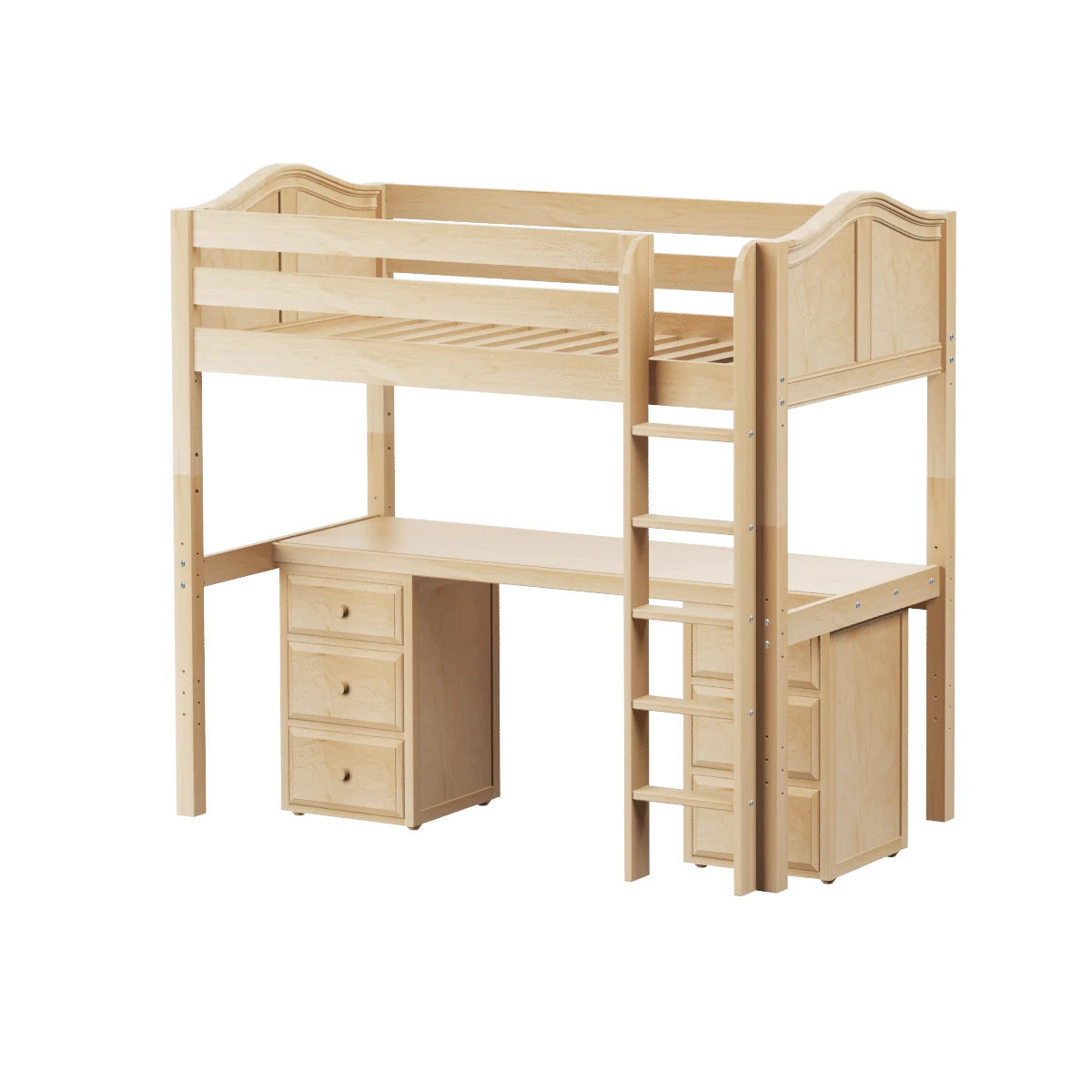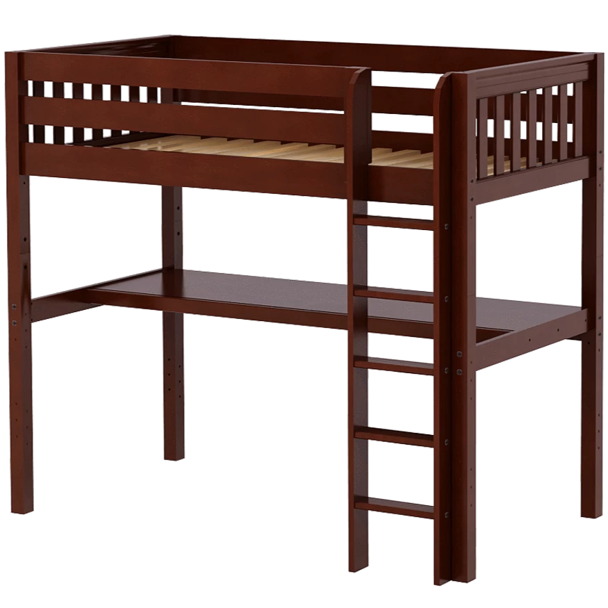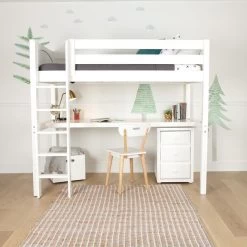 Our classic high loft with straight ladder becomes the ultimate sleep + study combo! Attached matching desk creates a functional spot for schoolwork and frees up valuable floorspace in your child’s bedroom. Over 4 ft of underbed clearance means even taller teenagers have enough space to sit comfortably.