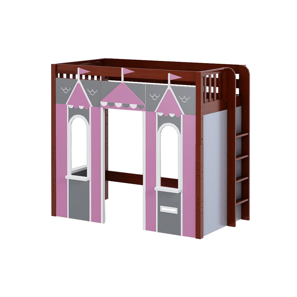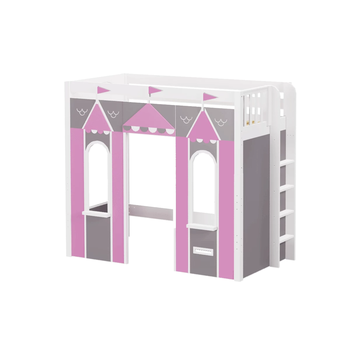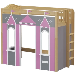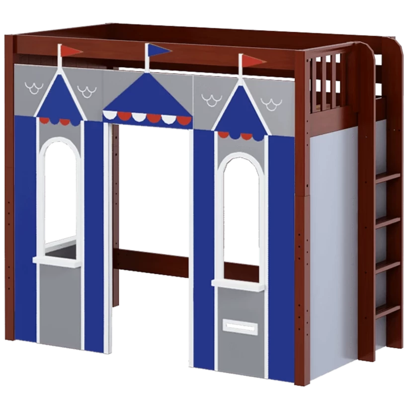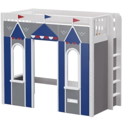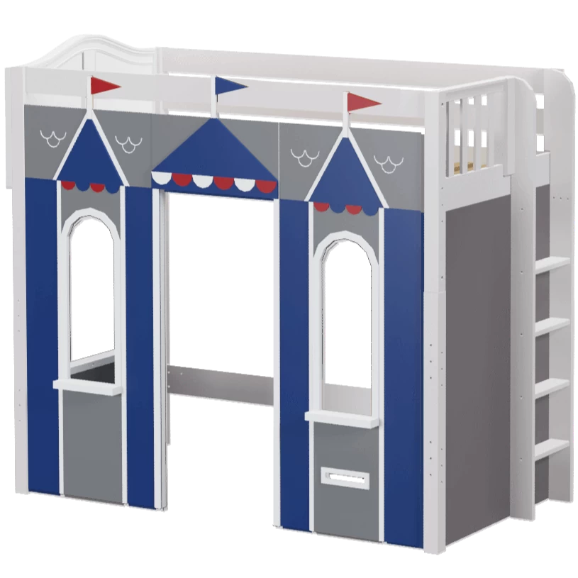 We created the ultimate indoor castle by adding colorful play panels to our best-selling high loft! Over 4 ft of underbed clearance is perfect for play today, and great for storage or study tomorrow as kids get older. Straight ladder sits flush against bed, saving floorspace.