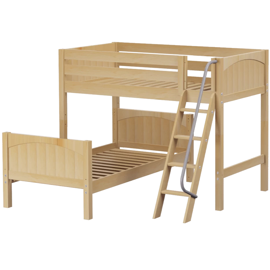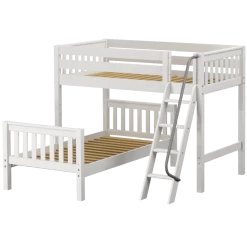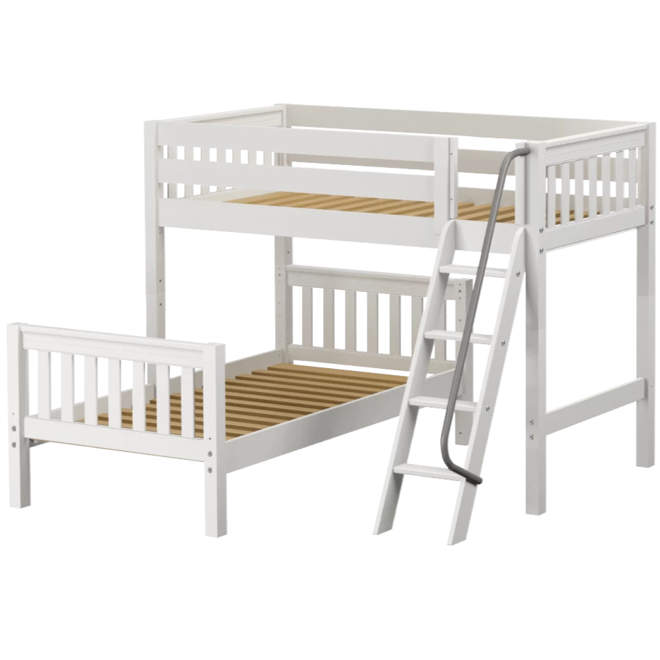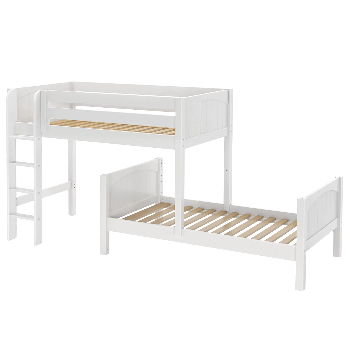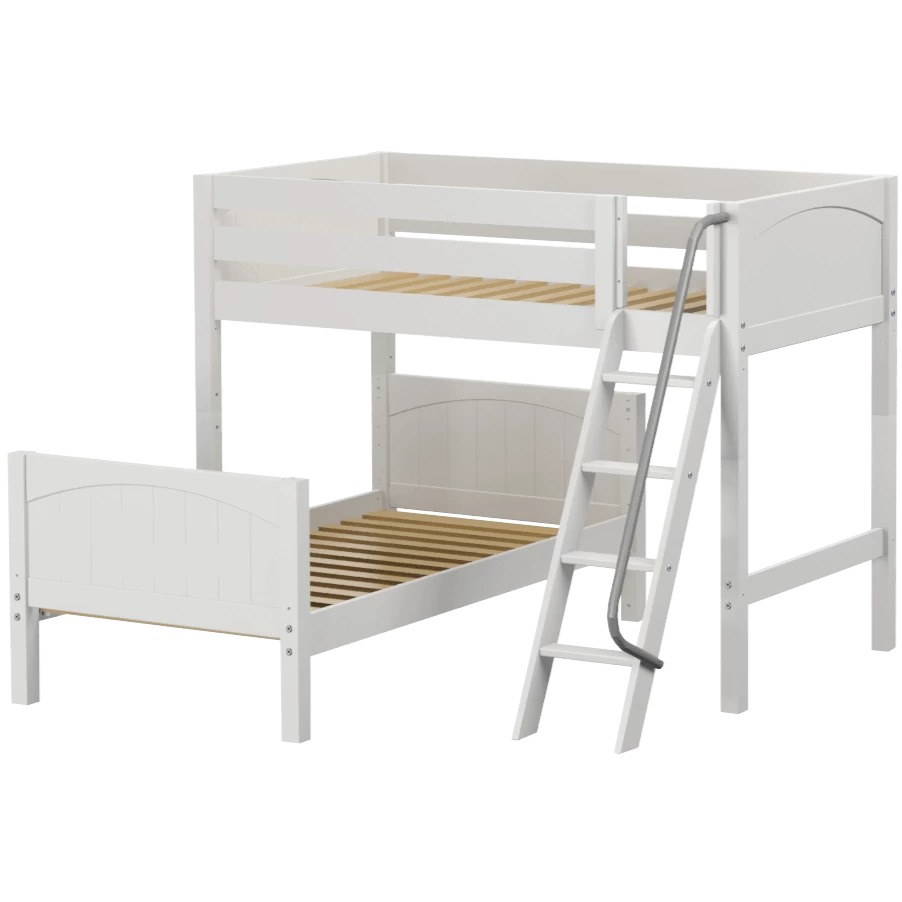 Kids are sure to love this super fun & functional design! Our Twin size L-shaped Bunk Bed can be assembled parallel or perpendicular. Option for space-saving straight ladder or easy to climb angled ladder with handrail.