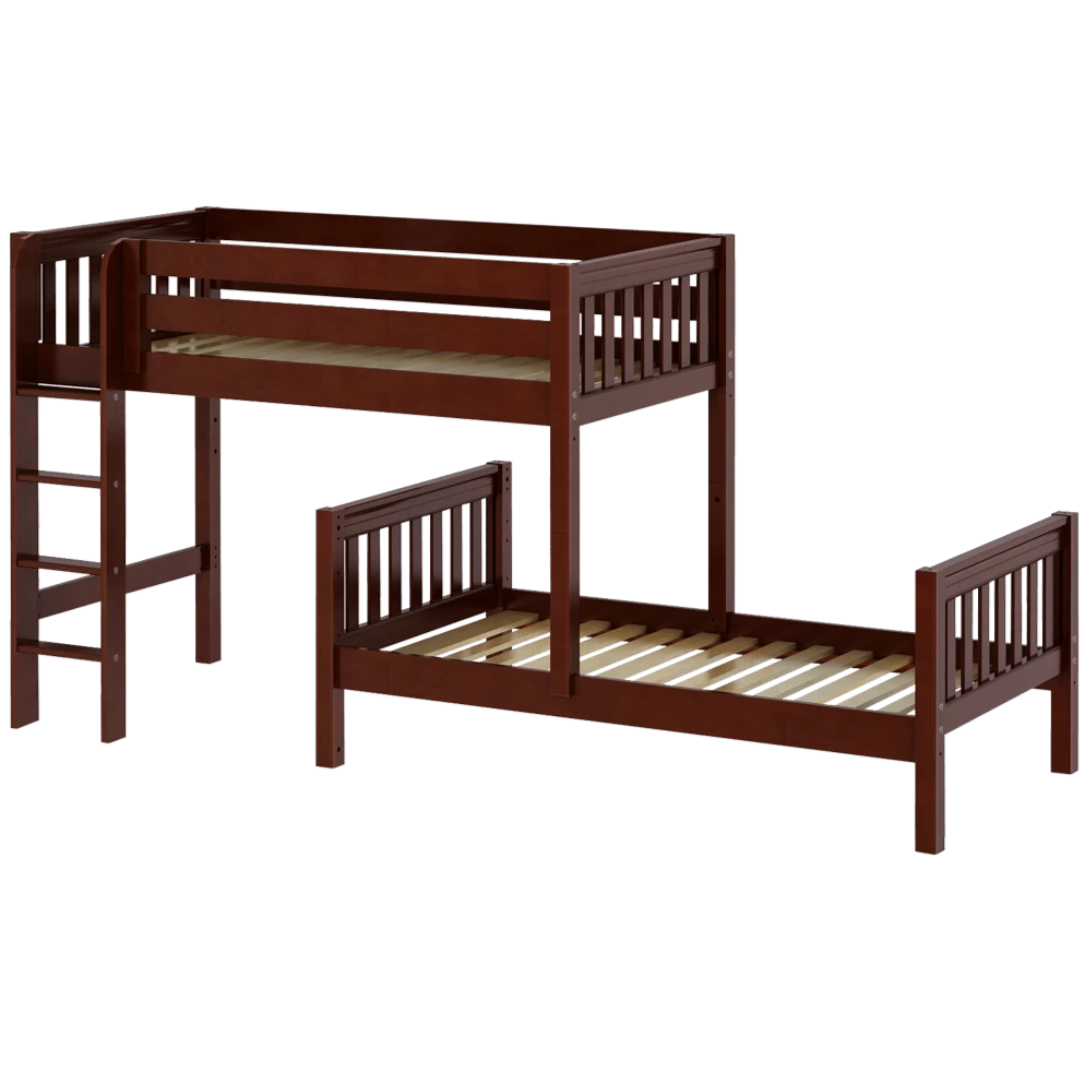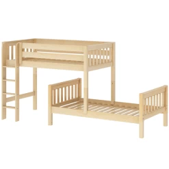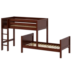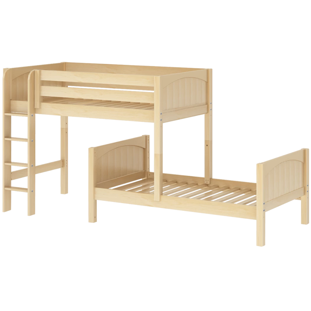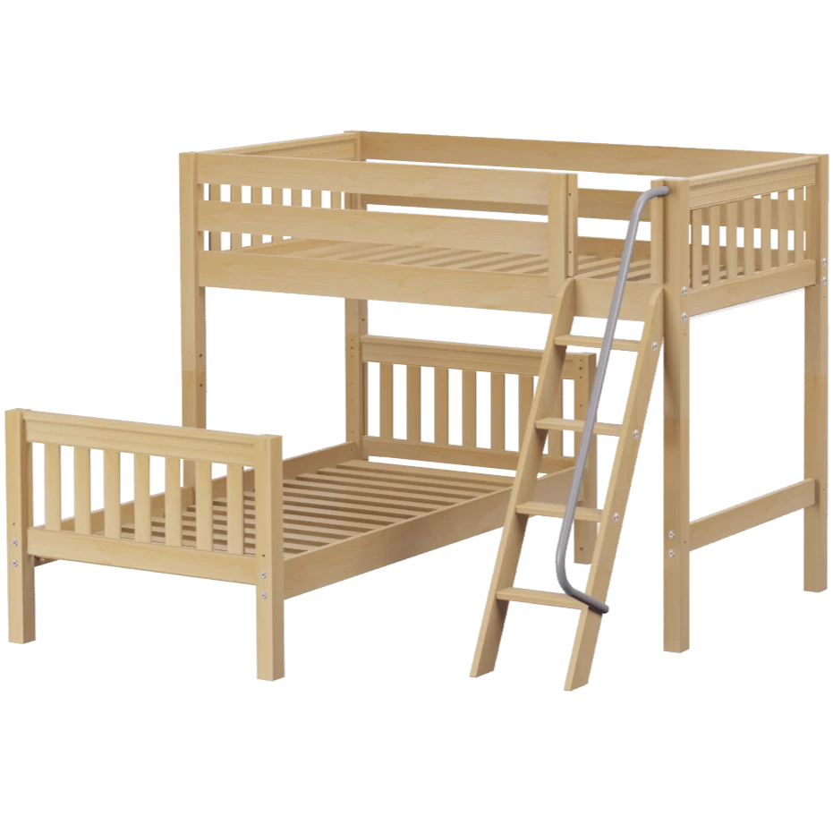 Kids are sure to love this super fun & functional design! Our Twin size L-shaped Bunk Bed can be assembled parallel or perpendicular. Option for space-saving straight ladder or easy to climb angled ladder with handrail.