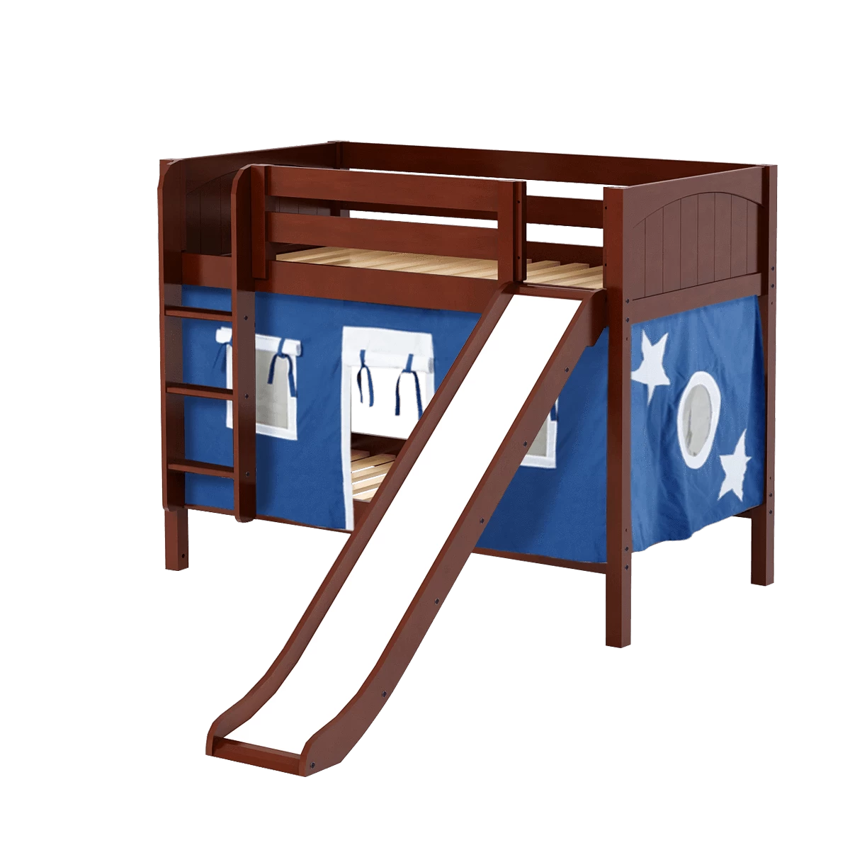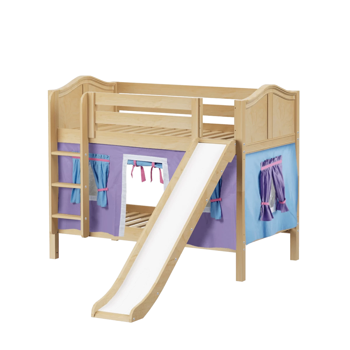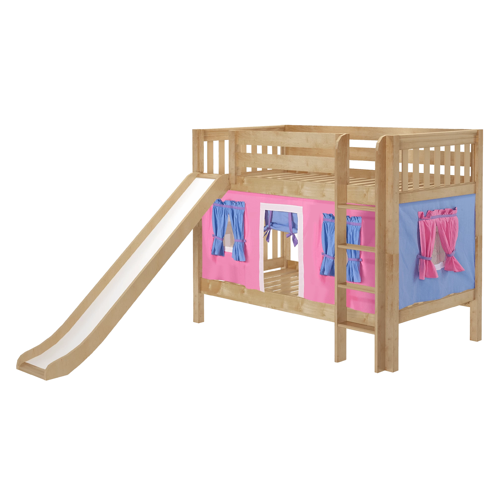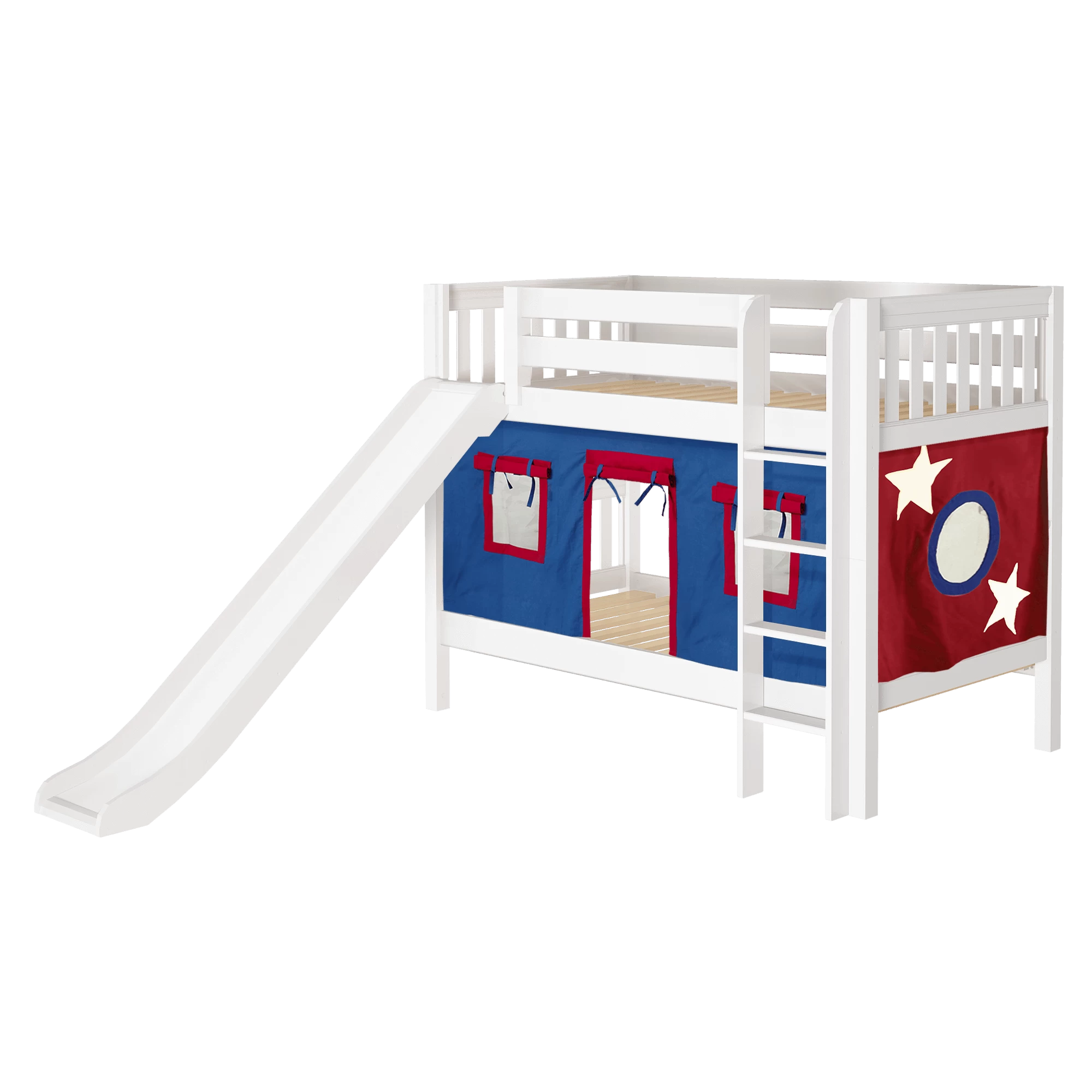 Maxtrix Twin Low Bunk Bed With Straight Ladder, Curtain + Slide