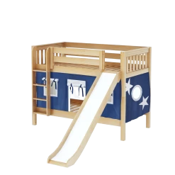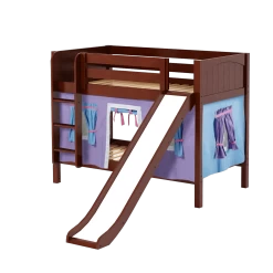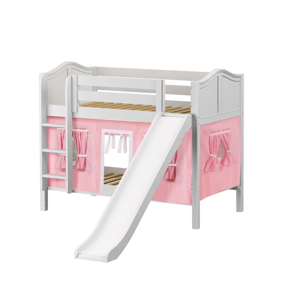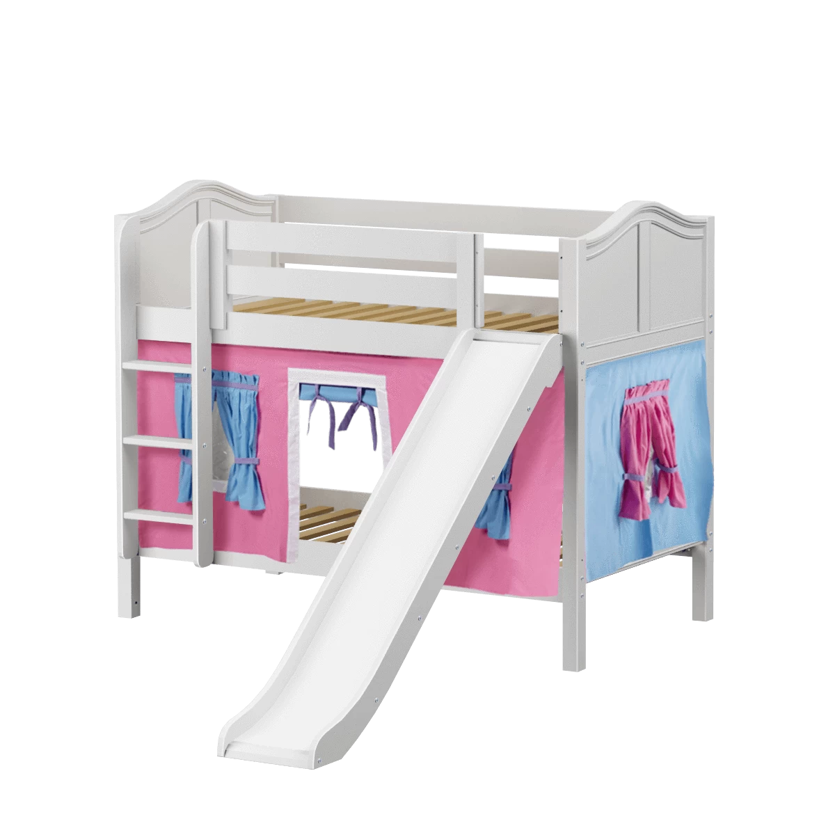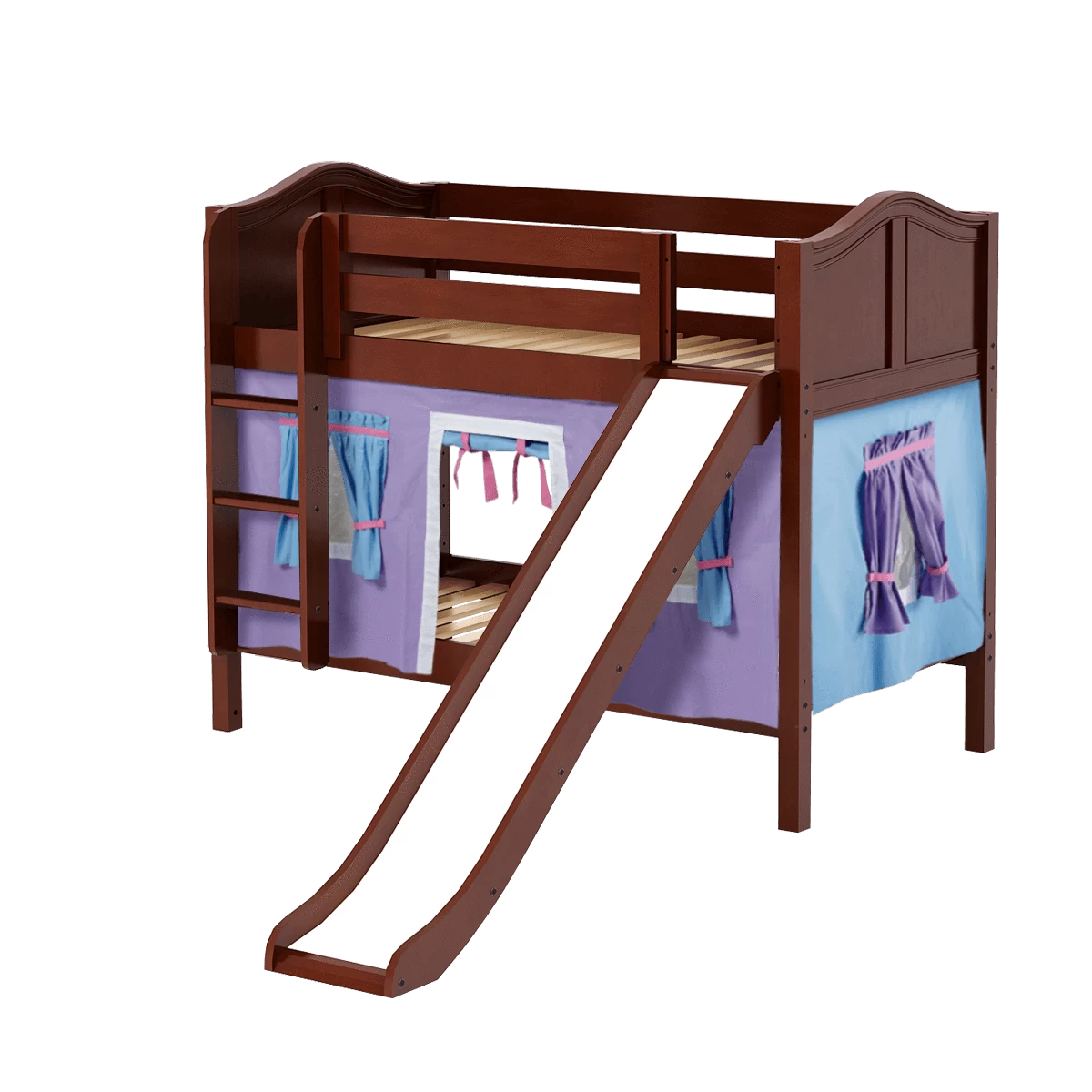 Maxtrix Twin Low Bunk Bed With Straight Ladder, Curtain + Slide