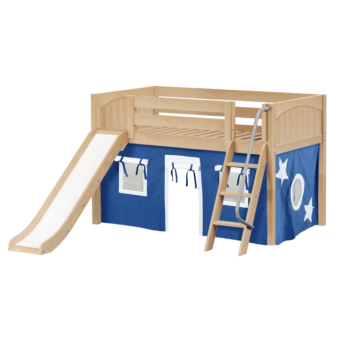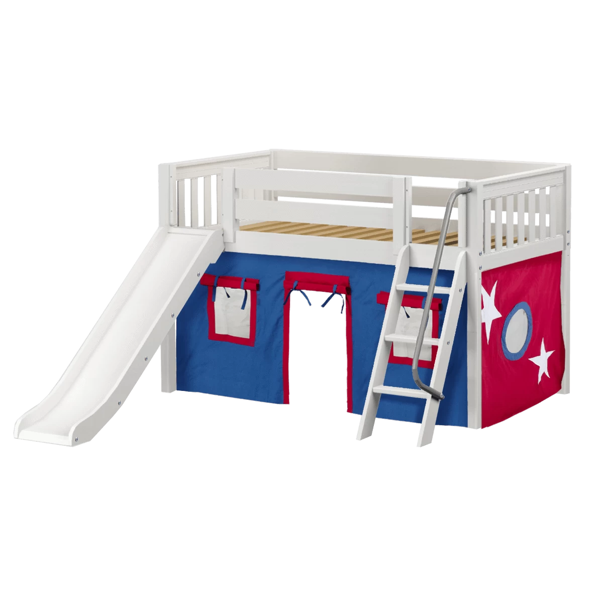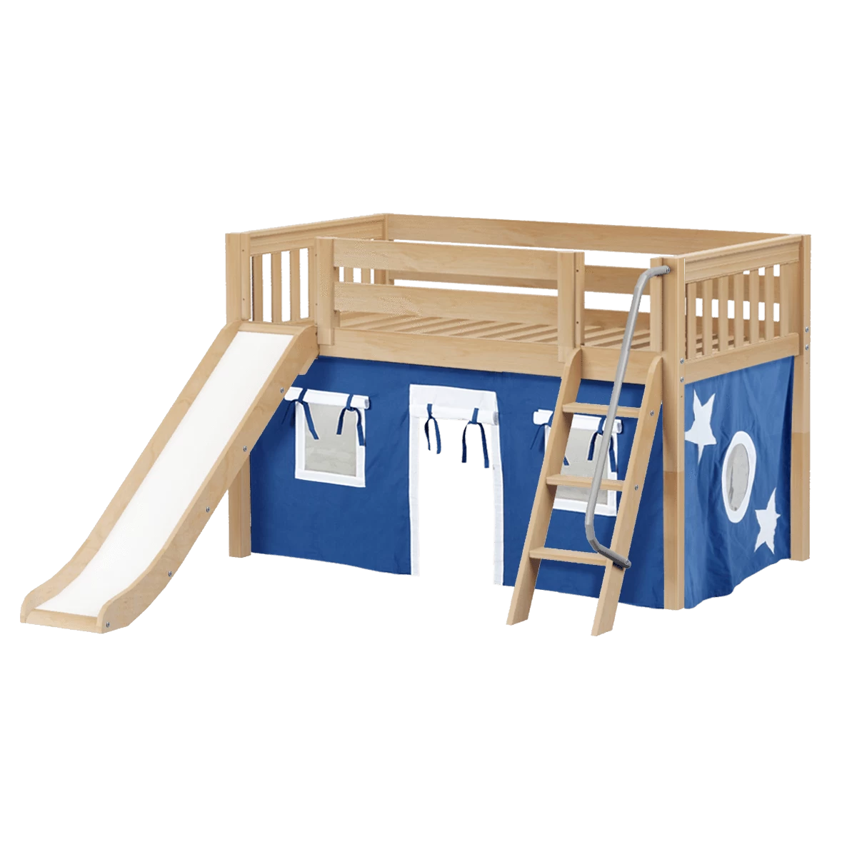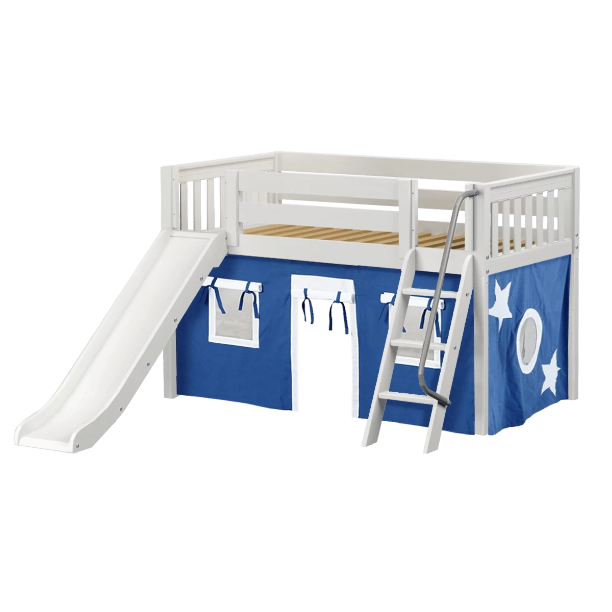 Maxtrix Twin Low Loft Bed With Angled Ladder, Curtain + Slide