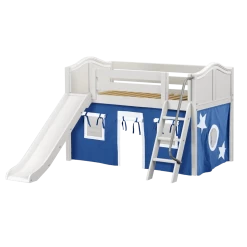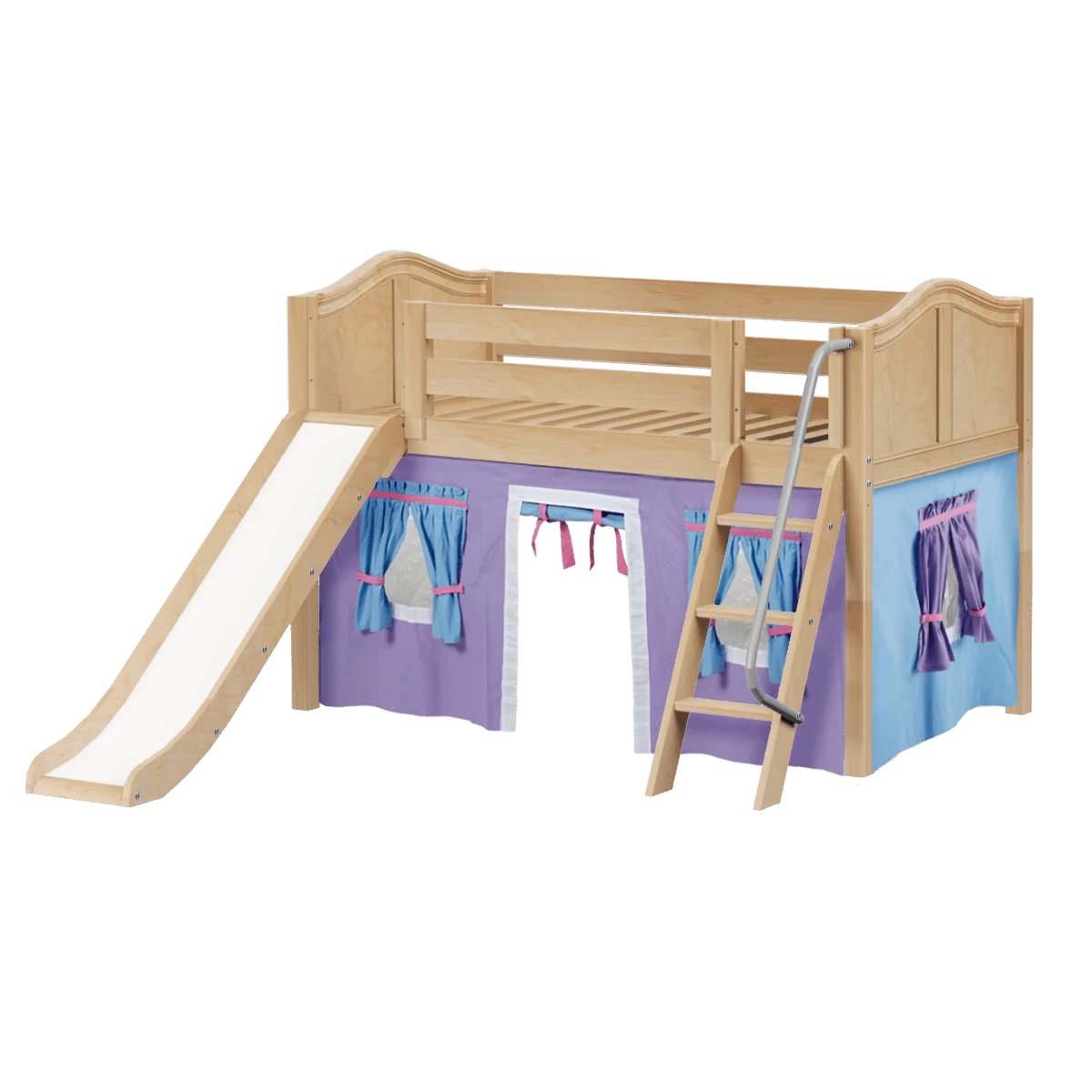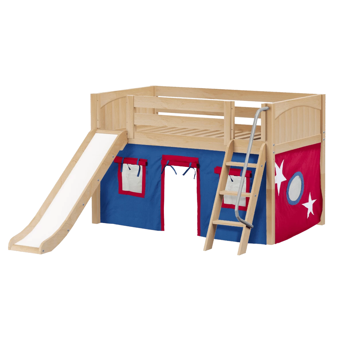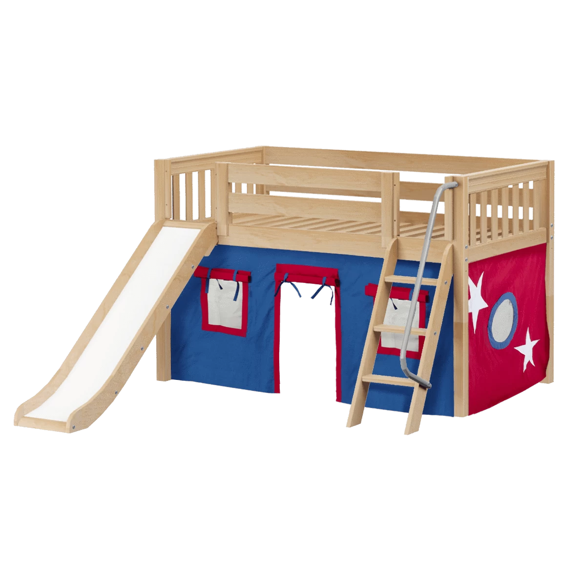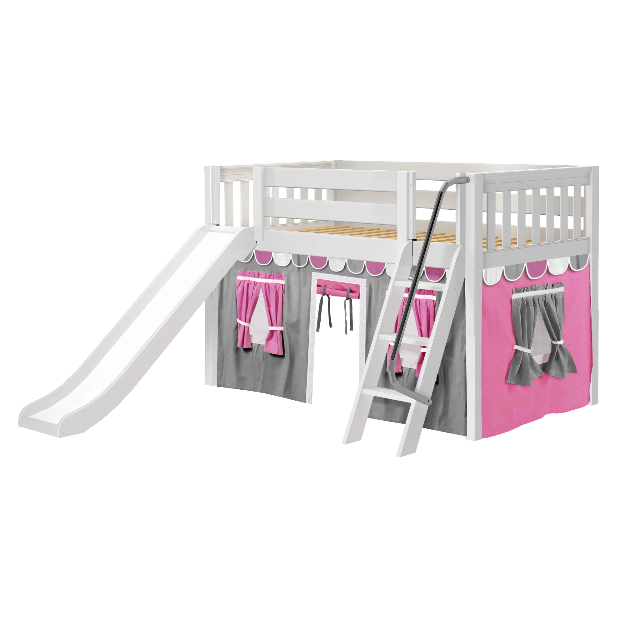 Maxtrix Twin Low Loft Bed With Angled Ladder, Curtain + Slide
