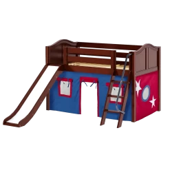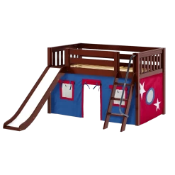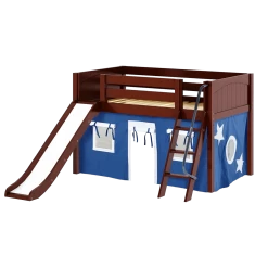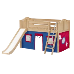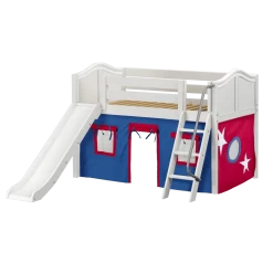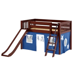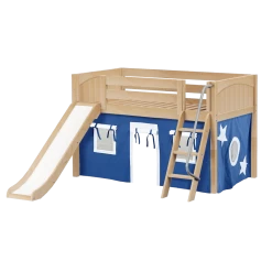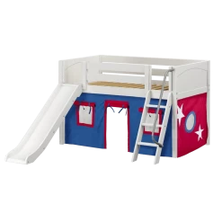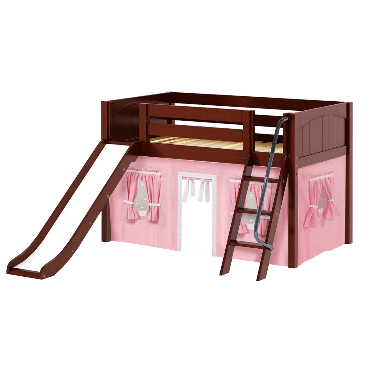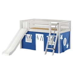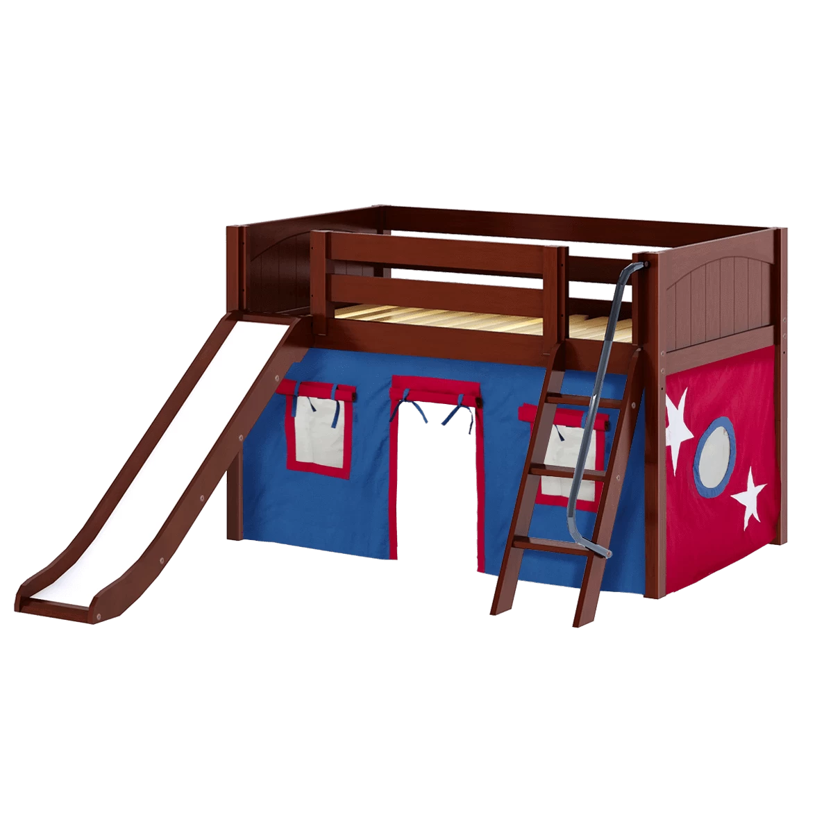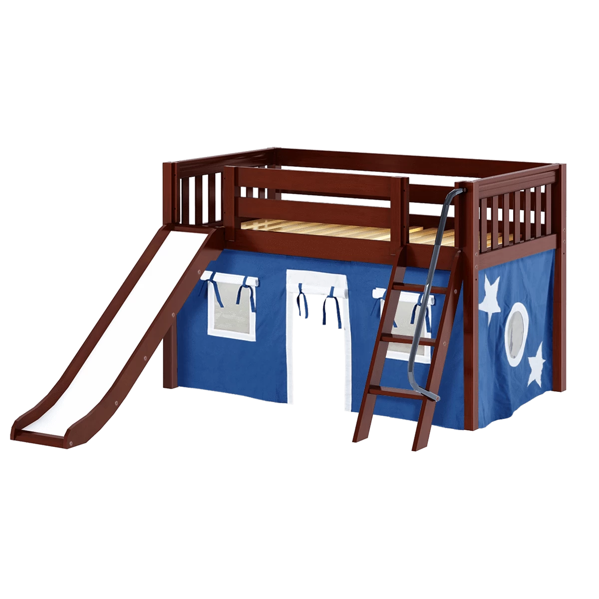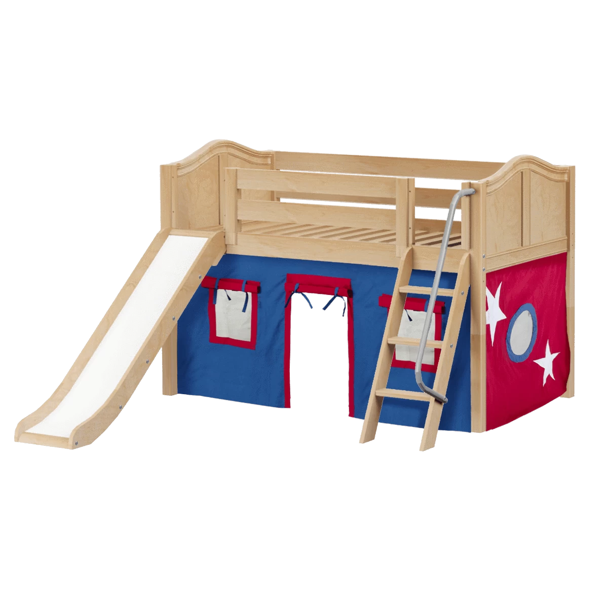 Maxtrix Twin Low Loft Bed With Angled Ladder, Curtain + Slide
