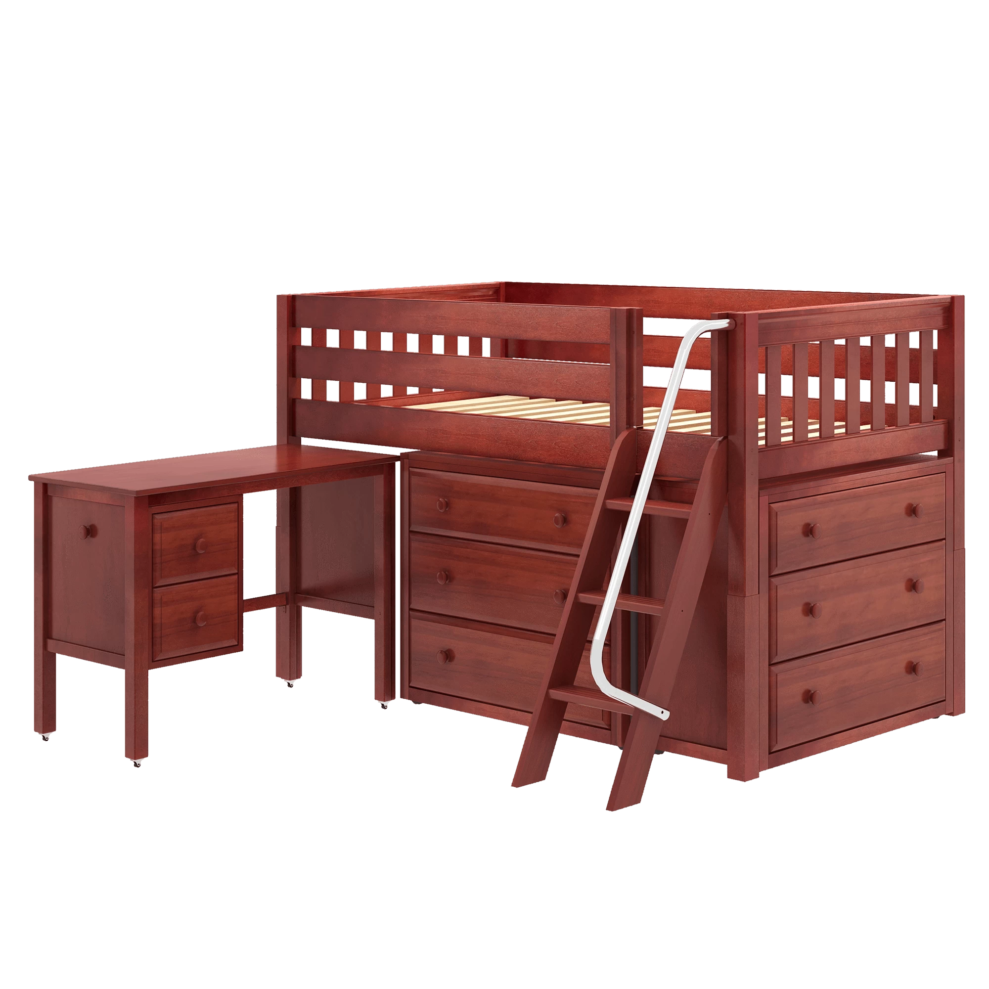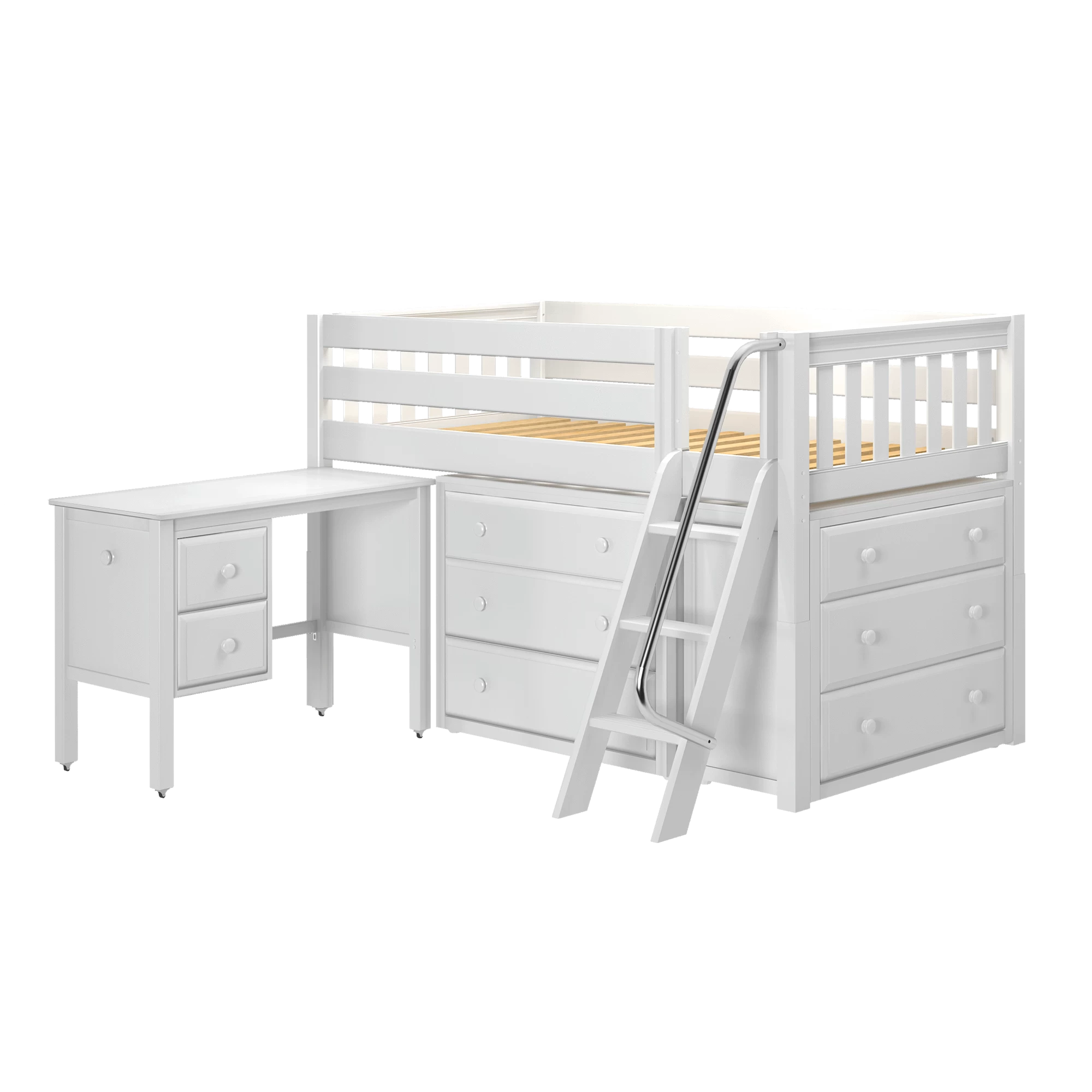Maxtrix Twin Low Loft Bed With Angled Ladder, Storage + Desk