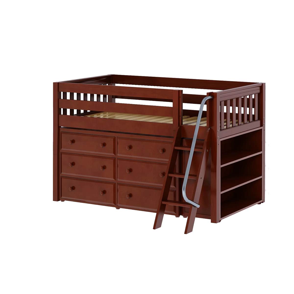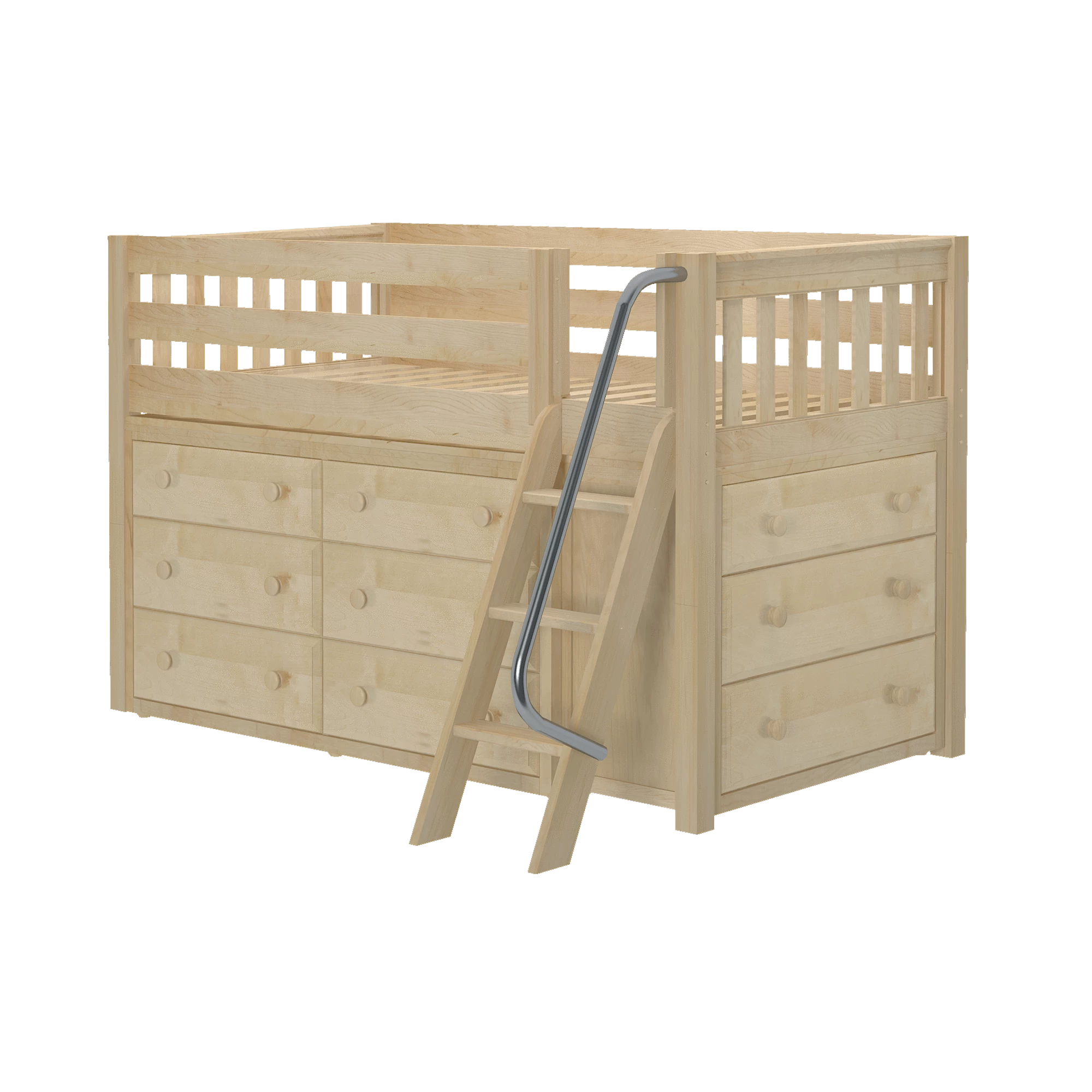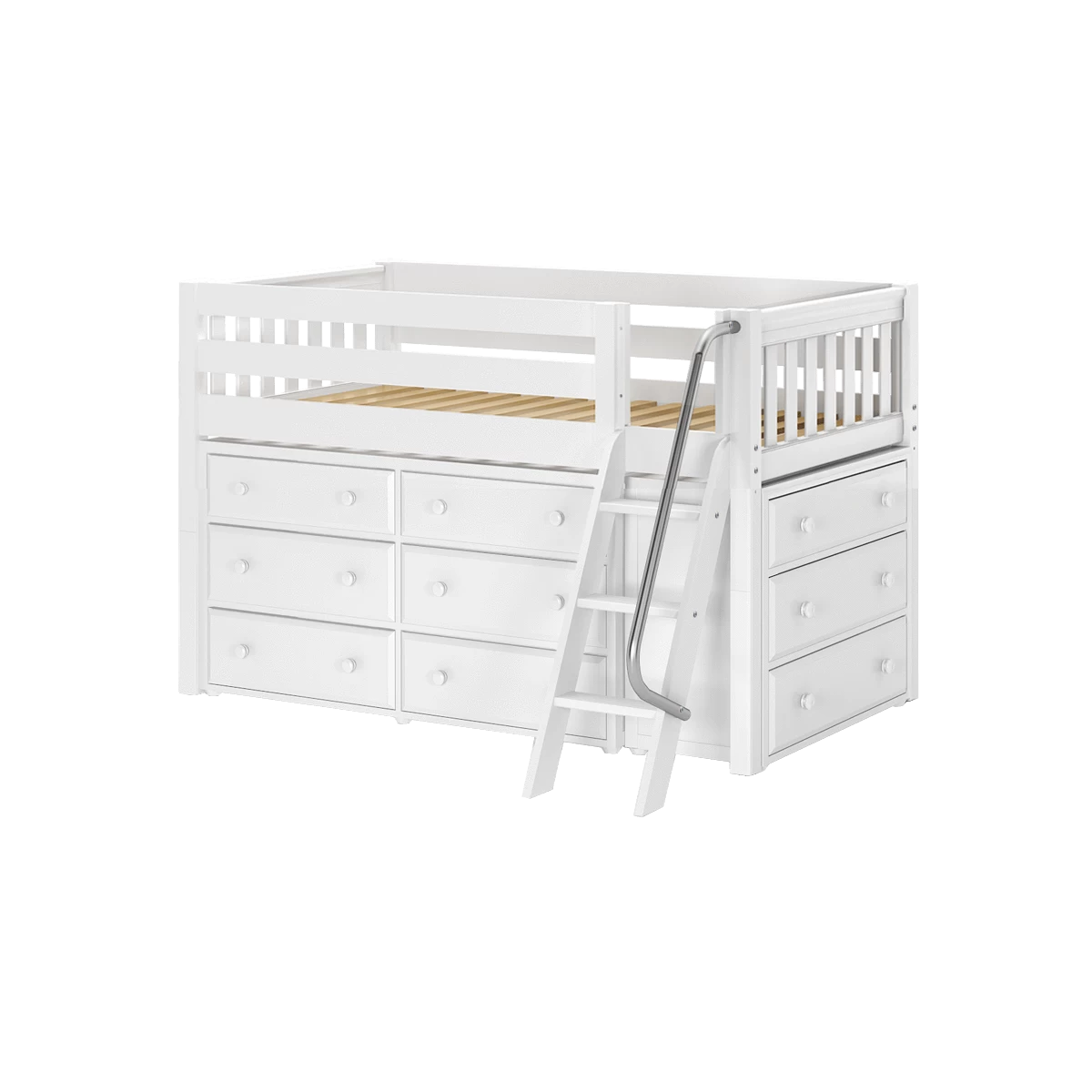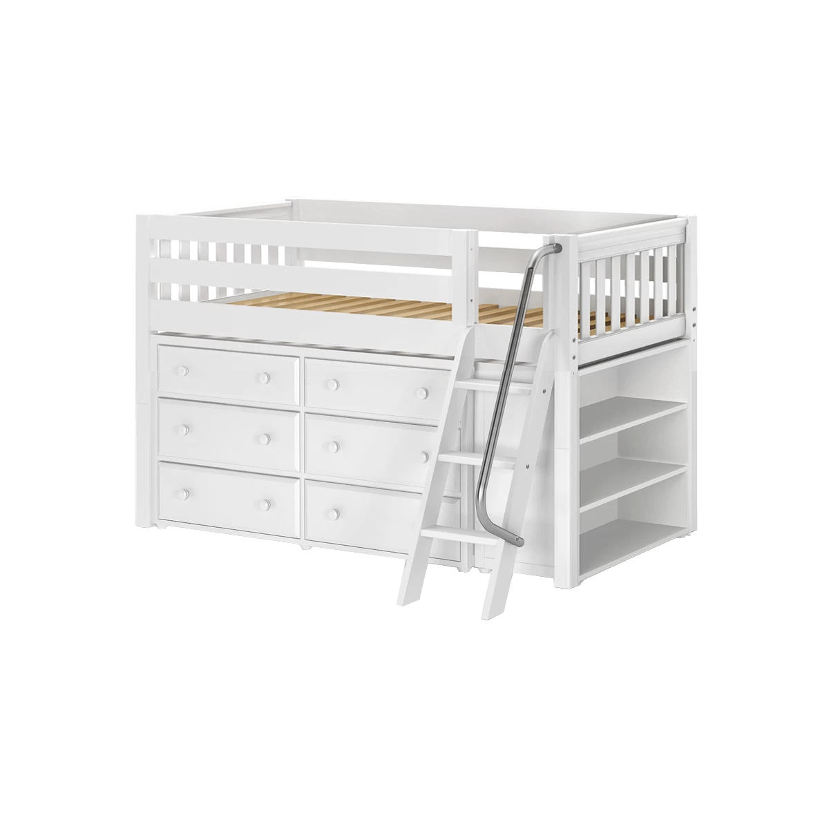 Maxtrix Twin Low Loft Bed With Angled Ladder + Storage