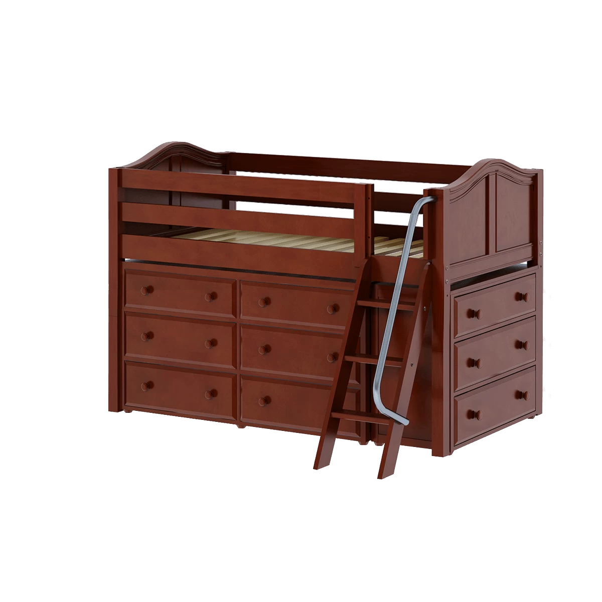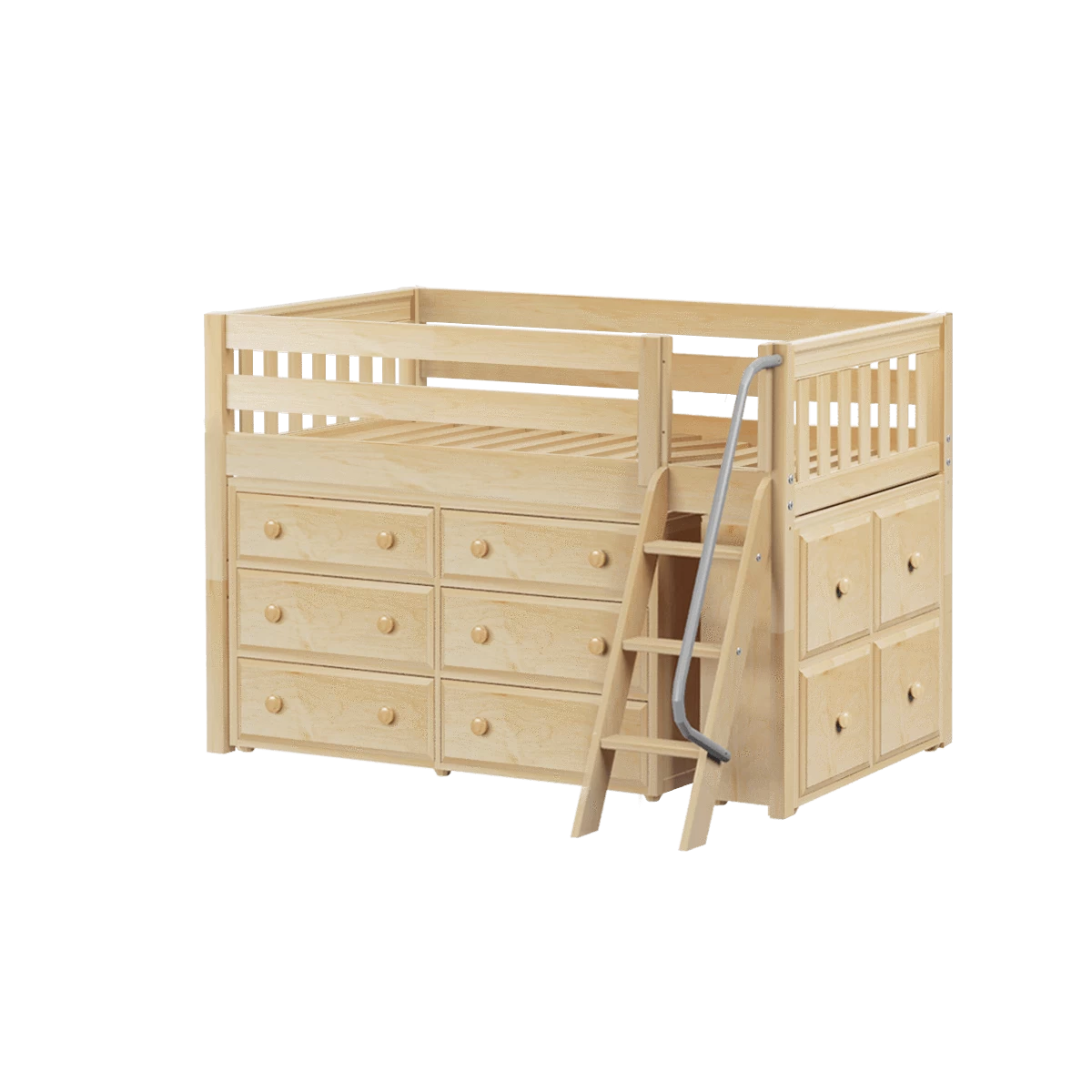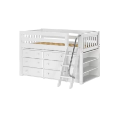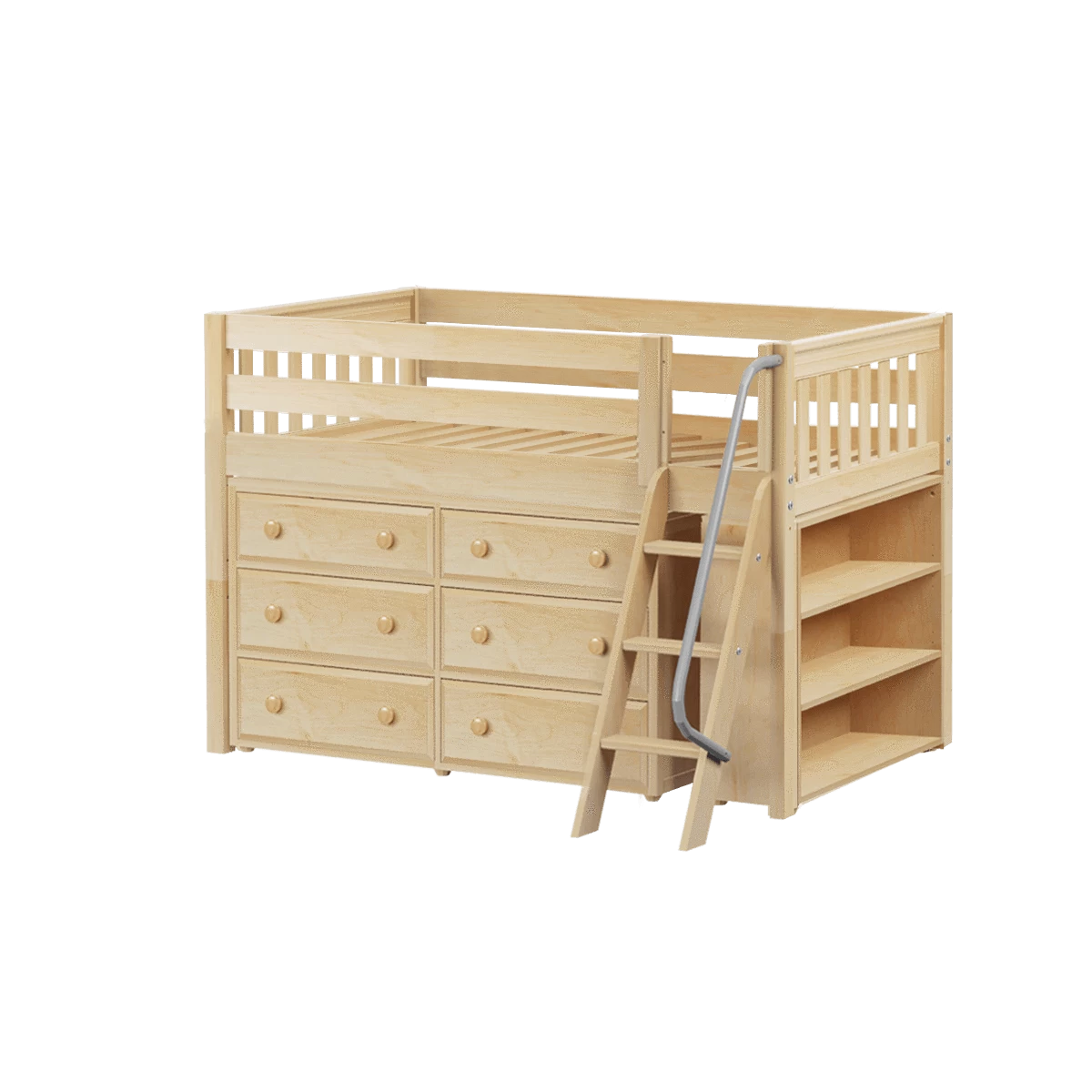 Maxtrix Twin Low Loft Bed With Angled Ladder + Storage