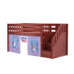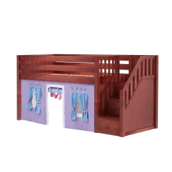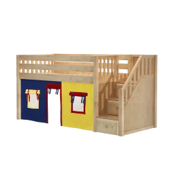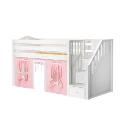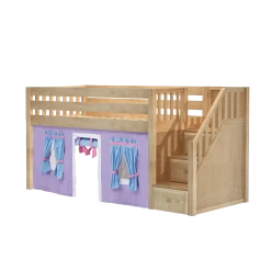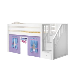 Maxtrix Twin Low Loft Bed With Stairs + Curtain