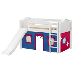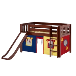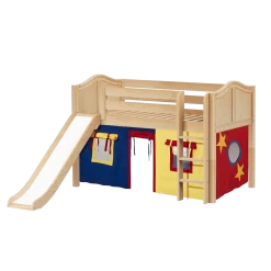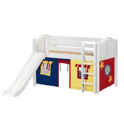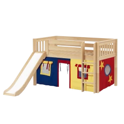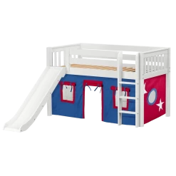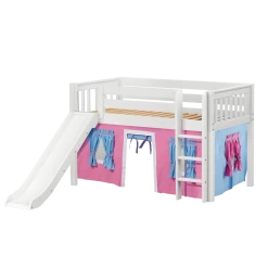 Maxtrix Twin Low Loft Bed With Straight Ladder, Curtain + Slide