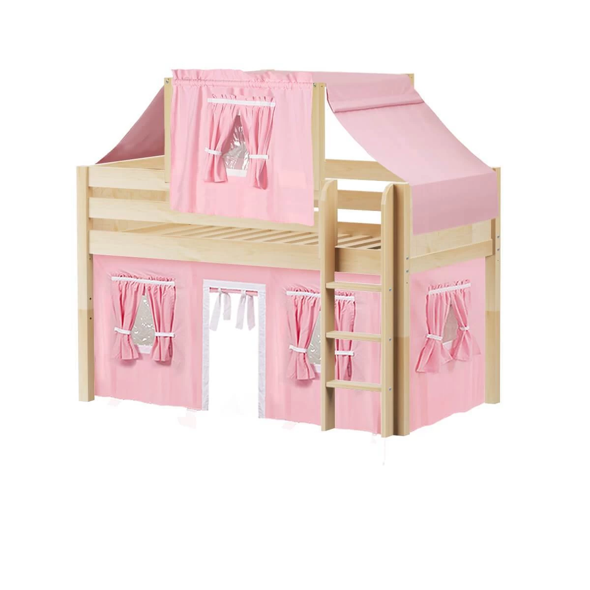 Maxtrix Twin Low Loft Bed With Straight Ladder, Curtain + Top Tent