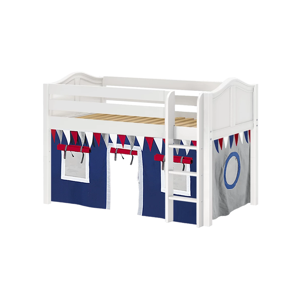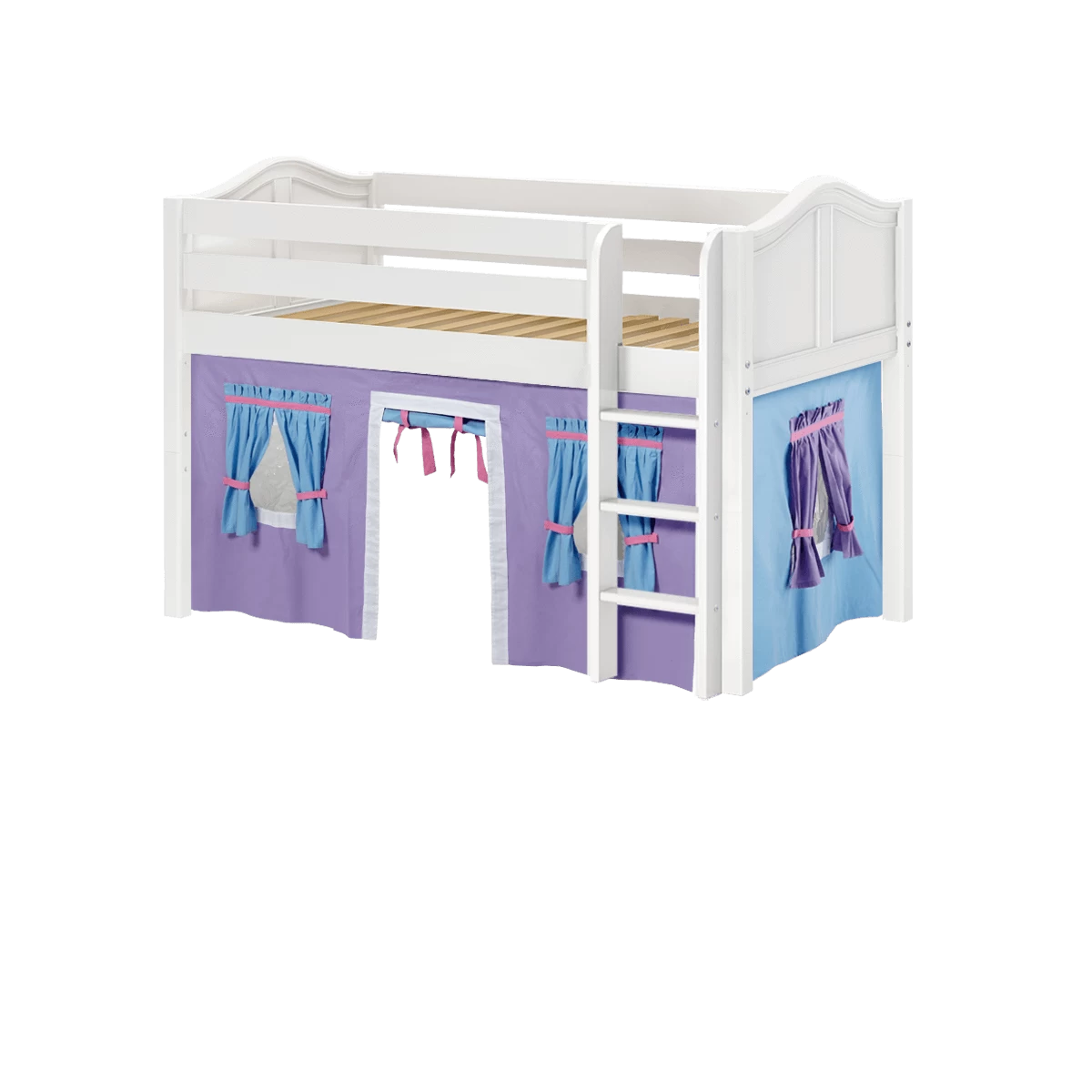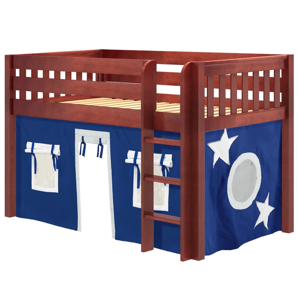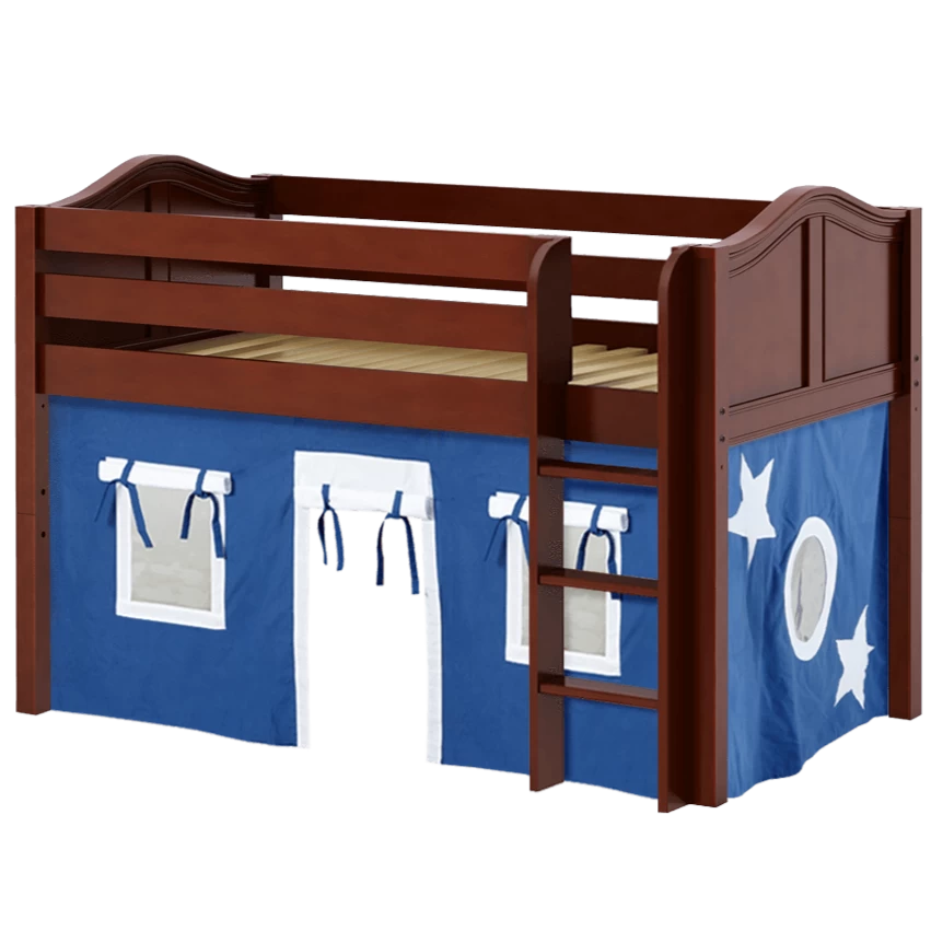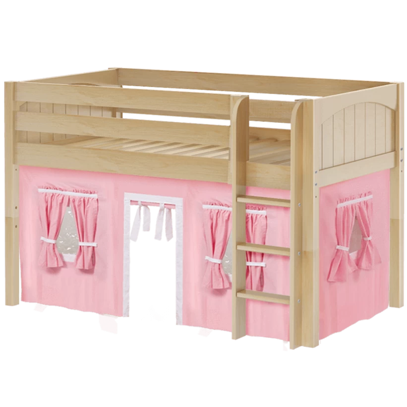 Inspire your child’s imagination with a playhouse loft bed! Only 50.75″ tall, our best-selling twin low loft with colorful curtains is the perfect intro to a raised bed. Space for sleep, storage and play all one place makes this just the right combination of fun and function.