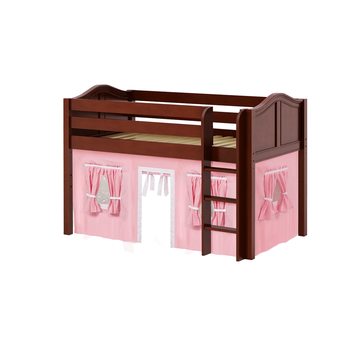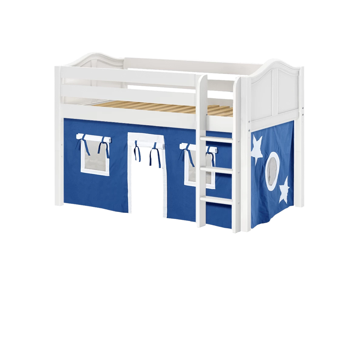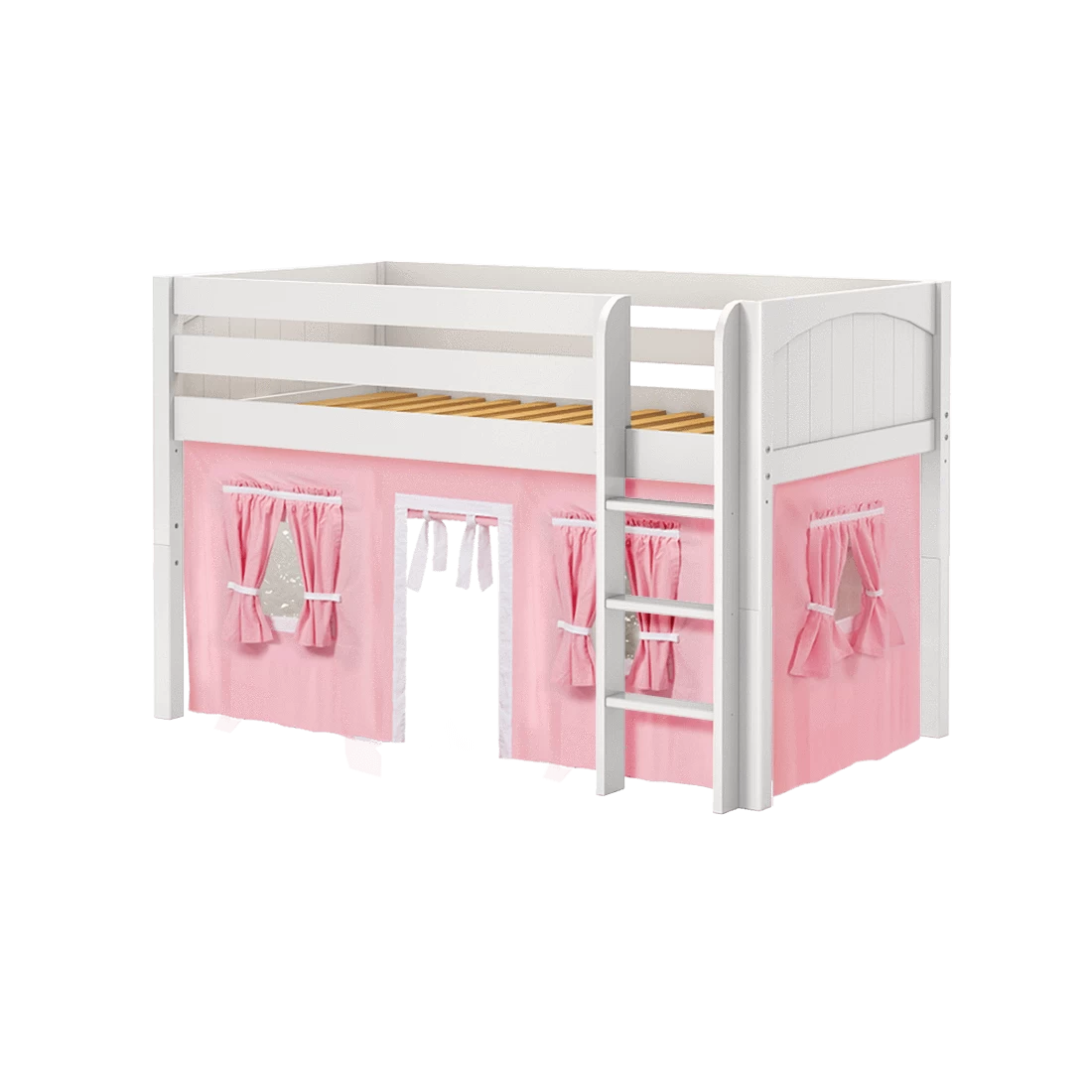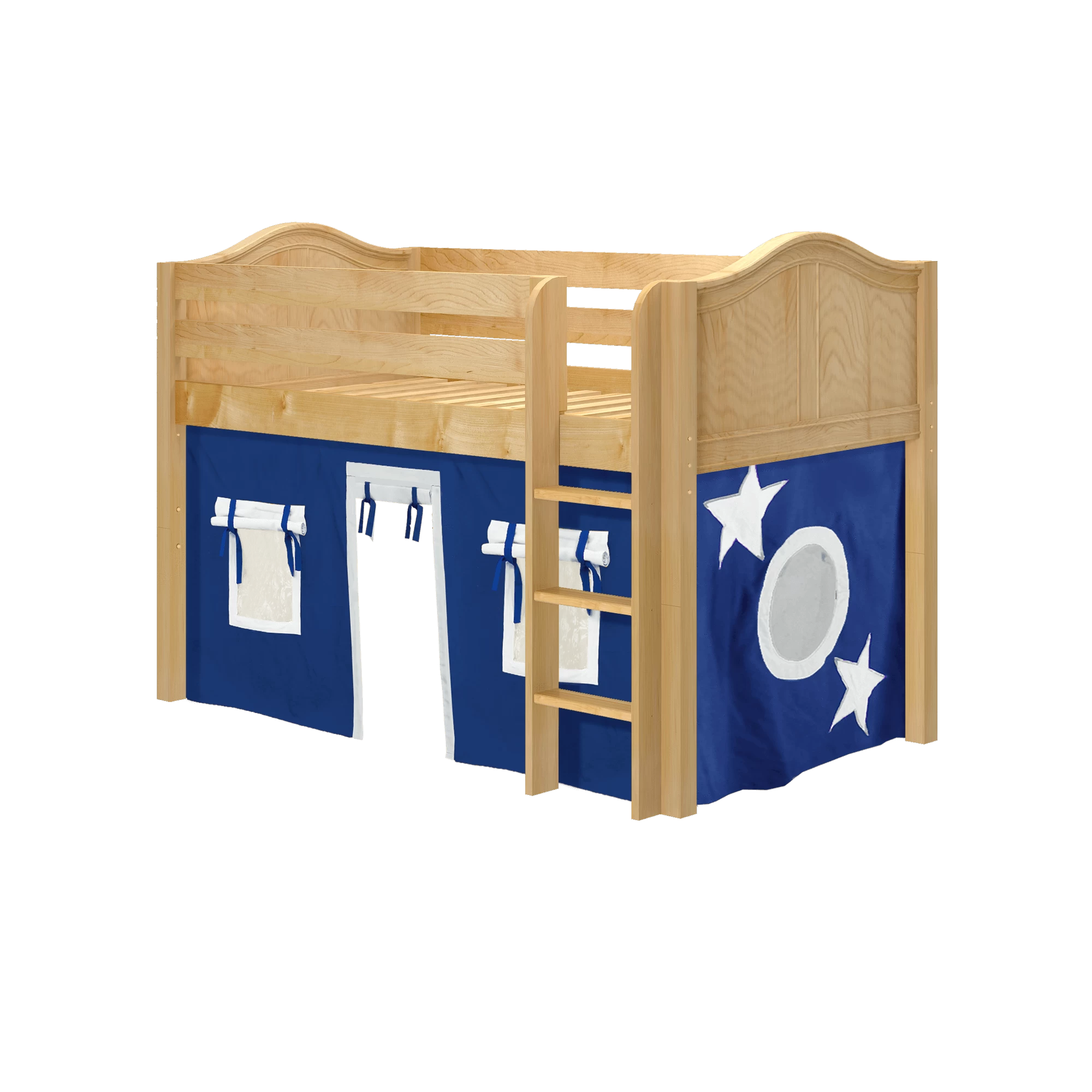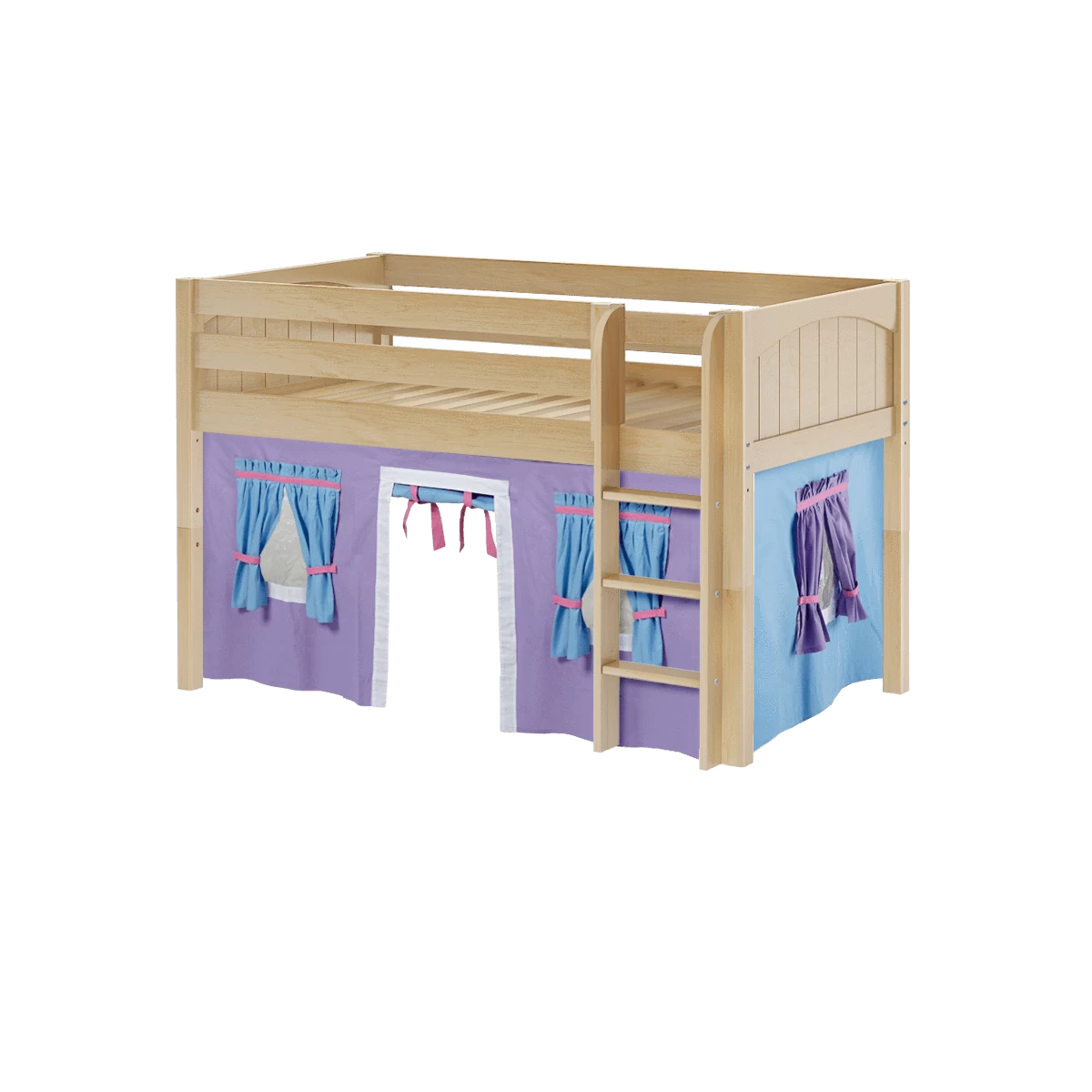 Inspire your child’s imagination with a playhouse loft bed! Only 50.75″ tall, our best-selling twin low loft with colorful curtains is the perfect intro to a raised bed. Space for sleep, storage and play all one place makes this just the right combination of fun and function.
