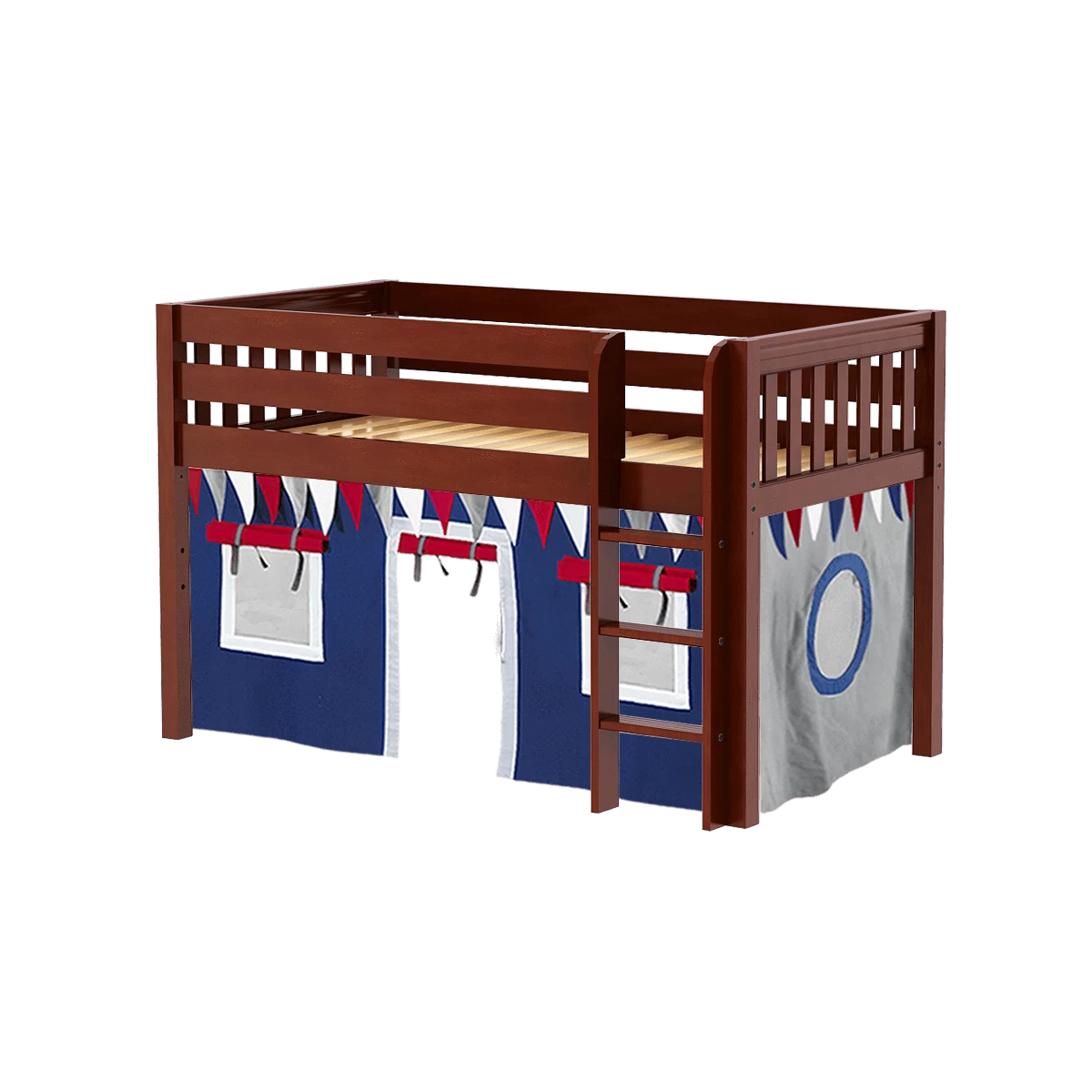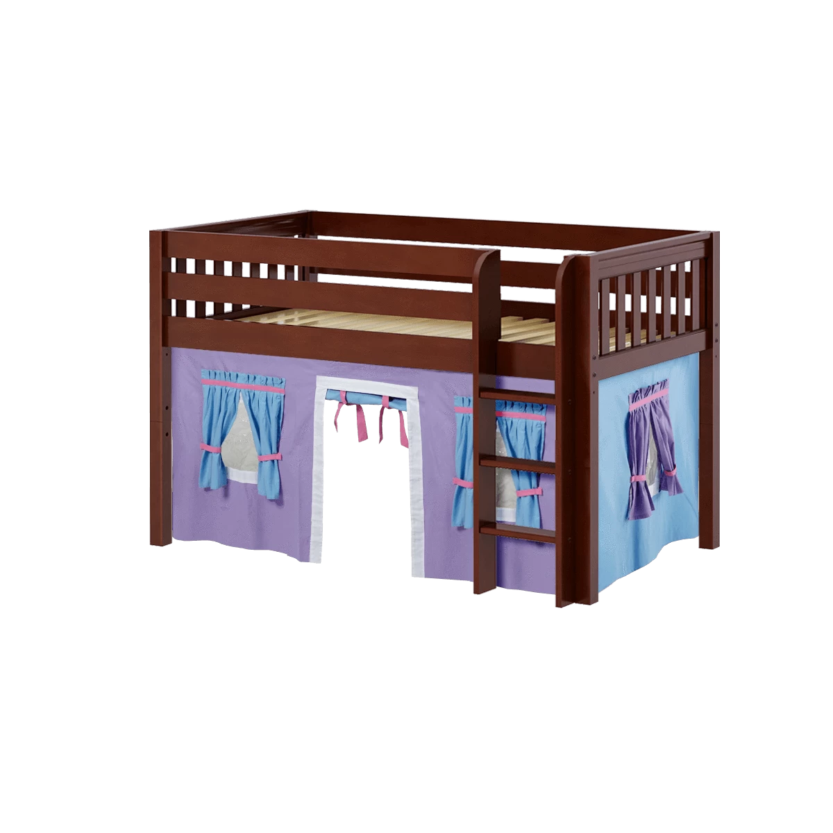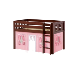Kids love sleeping up high, parents think safety first. We created a twin size junior loft bed with straight ladder that works for both. Colorful underbed curtains add an element of indoor fun!
