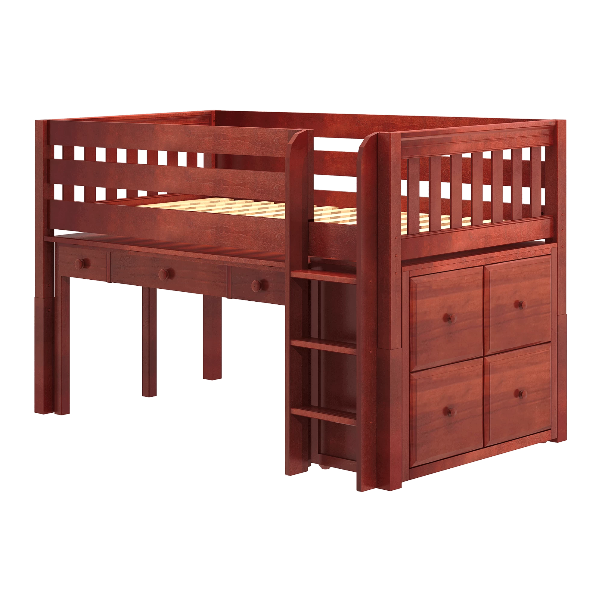 Maxtrix Twin Low Loft Bed With Straight Ladder, Storage + Long Desk