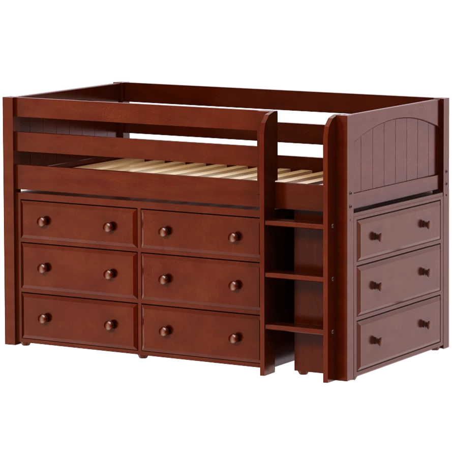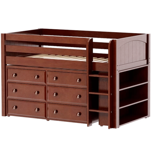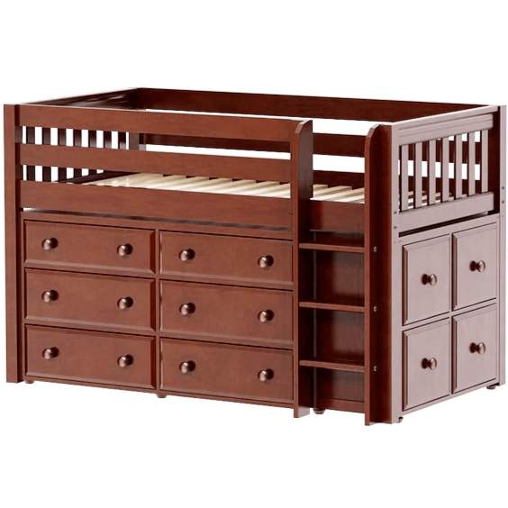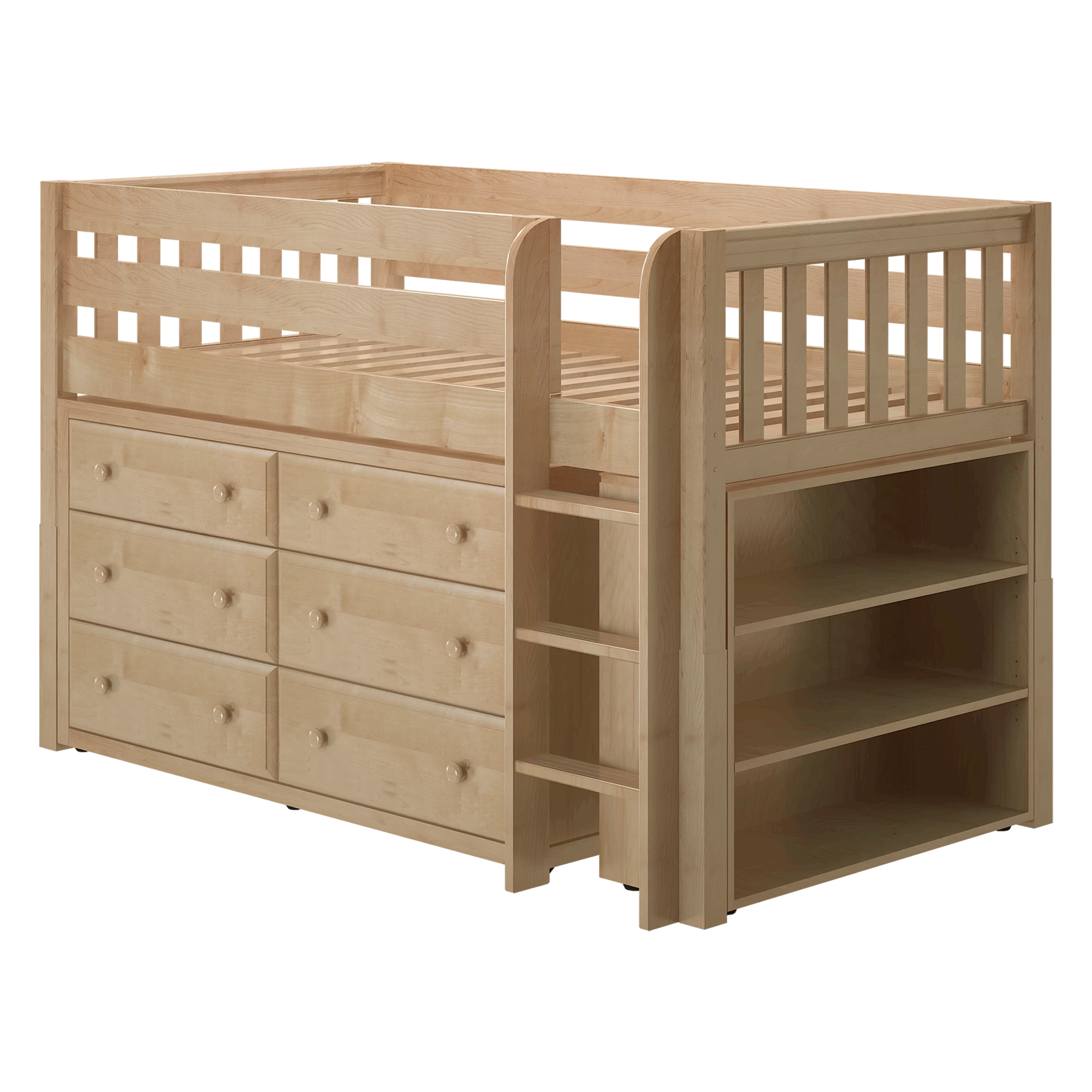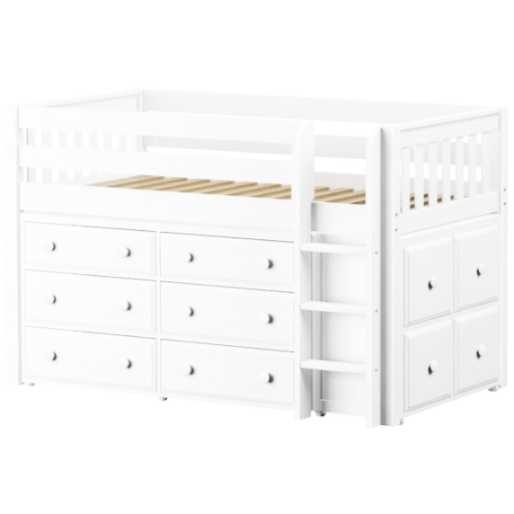 Maxtrix Twin Low Loft Bed With Straight Ladder + Storage
