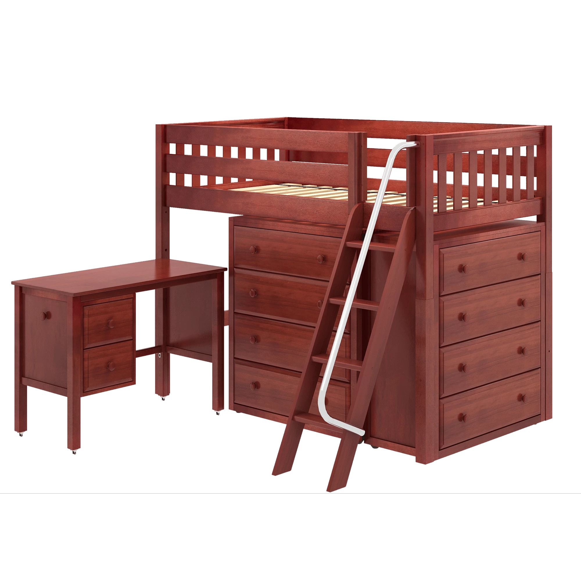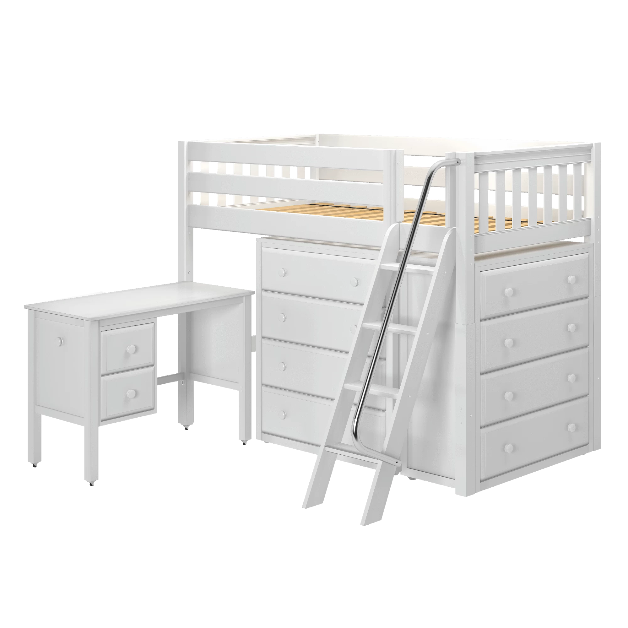 Maxtrix Twin Mid Loft Bed With Angled Ladder, Storage + Desk