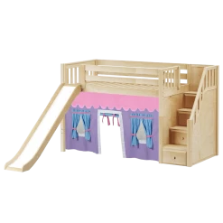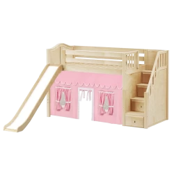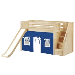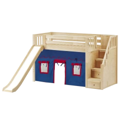 Maxtrix Twin Mid Loft Bed With Stairs, Curtain + Slide