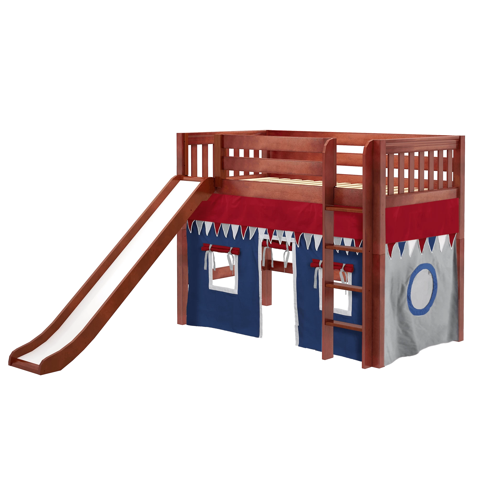 Maxtrix Twin Mid Loft Bed With Straight Ladder, Curtain + Slide