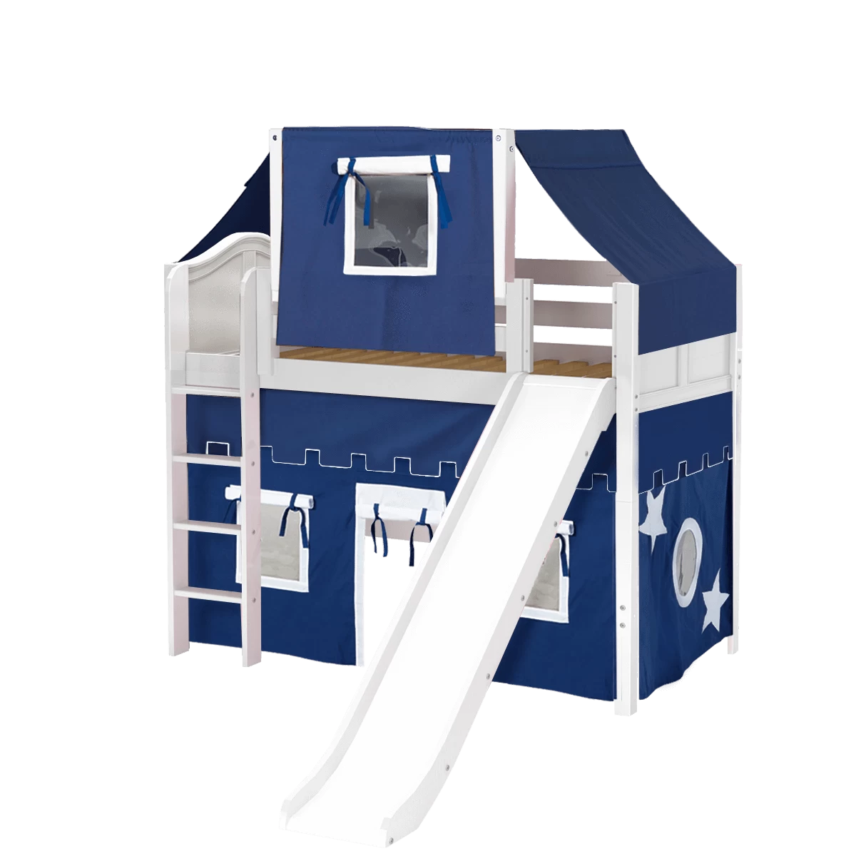 Our classic mid loft bed with straight ladder becomes the ultimate storage + study cube! Create your ideal combo of matching case goods, all designed to fit perfectly. Desk pulls out easily at homework time then slides back underneath. Each piece is freestanding so you can also use separately.