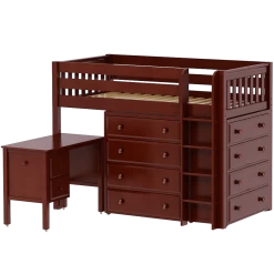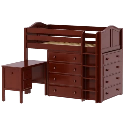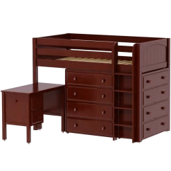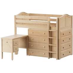 Our classic mid loft bed with straight ladder becomes the ultimate storage + study cube! Create your ideal combo of matching case goods, all designed to fit perfectly. Desk pulls out easily at homework time then slides back underneath. Each piece is freestanding so you can also use separately.