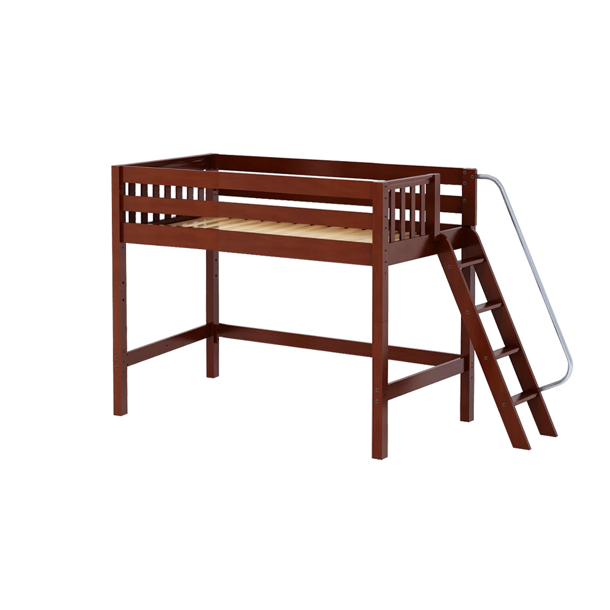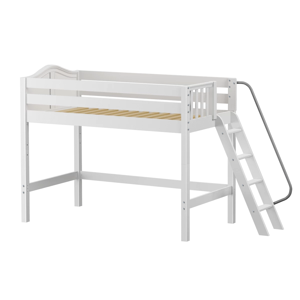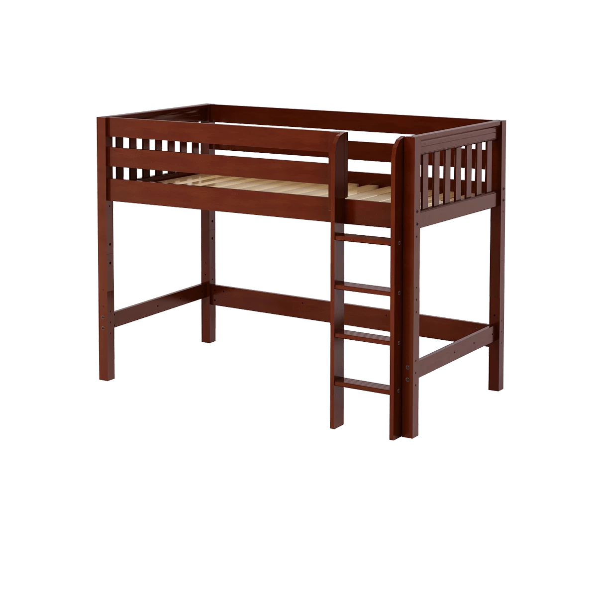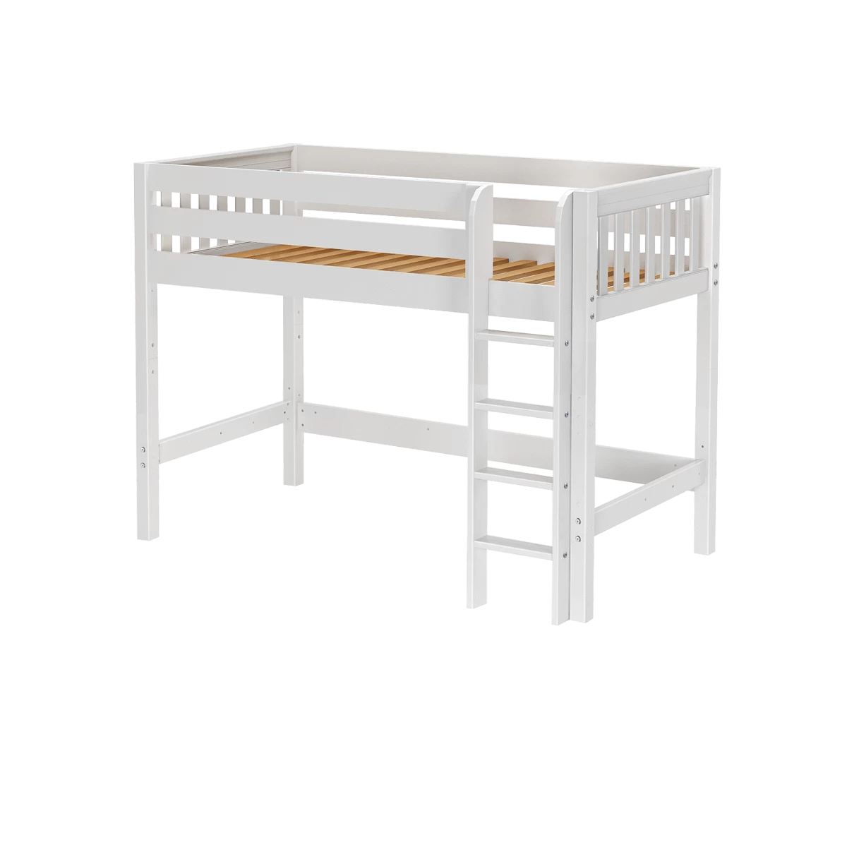 Raised high enough for ample underbed space, but still suitable for younger children and low ceilings, our popular twin mid loft bed with ladder works for all!