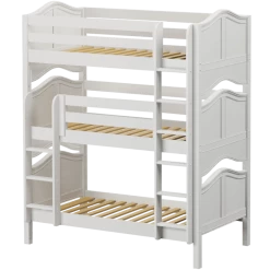 Full house? No problem! Whether you have multiple children sharing a room or a need a solution to accommodate overnight guests, our triple bunk is a space saving way to sleep three. Stacked twin beds form one super sturdy unit. Patented Rock Lock system keeps it strong + stable.