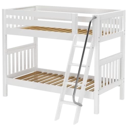 Our medium bunk bed is the Maxtrix best seller for a reason! Now available in Twin XL to accommodate longer legs. Classic stacked design is a space-saving way to sleep two comfortably. Medium height = more space between beds, but still safe enough little ones + fits average ceilings.
