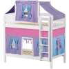 Use floor space under the loft for play (optional cute under bed curtains), storage (matching dressers or bookshelves), or add your own kids furniture.