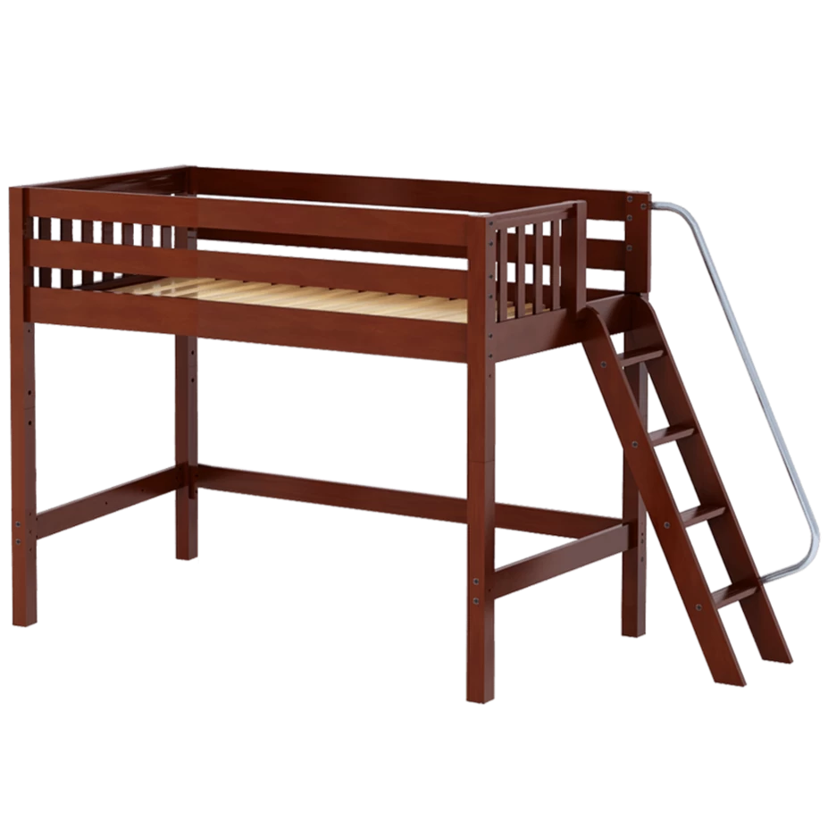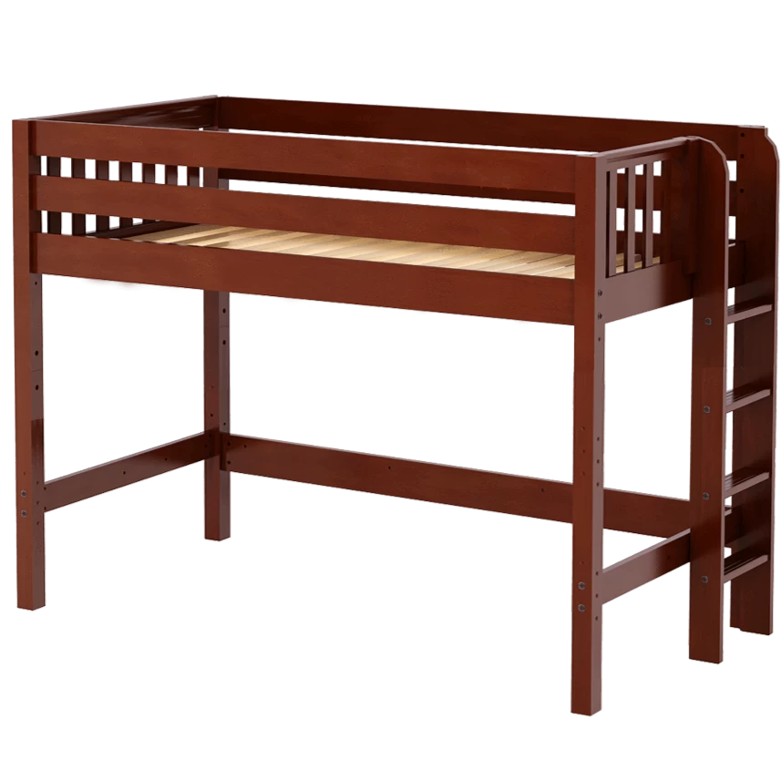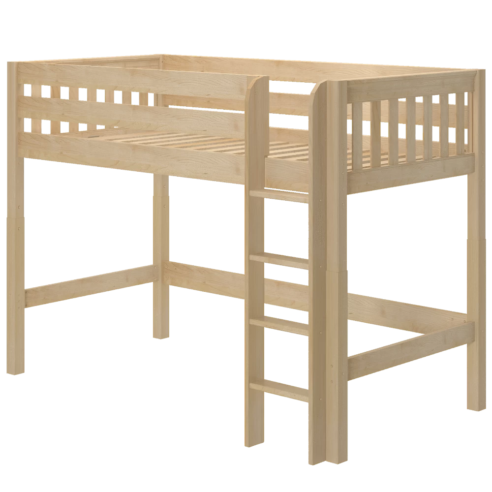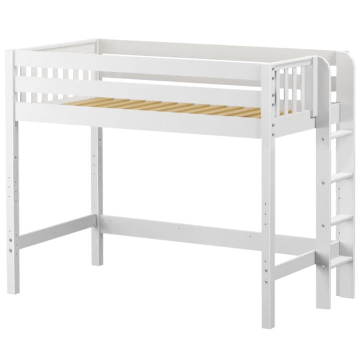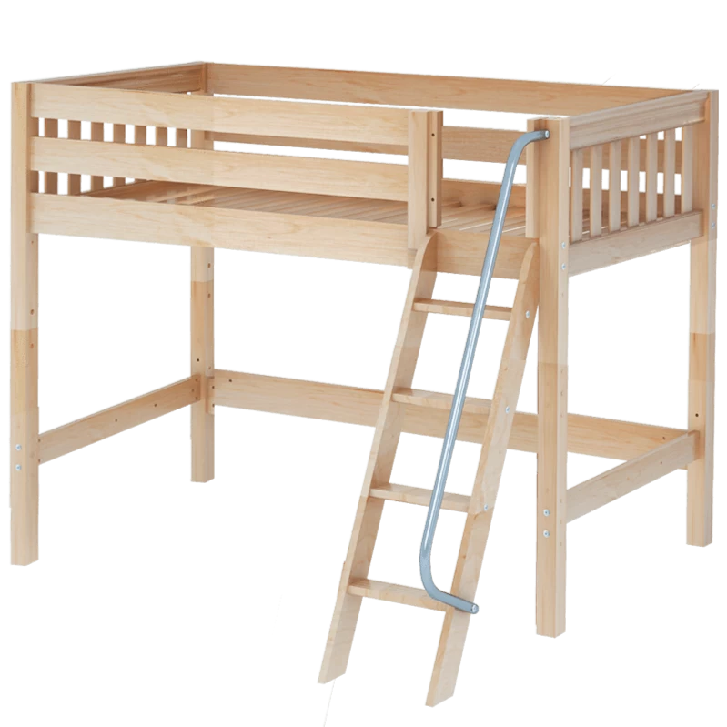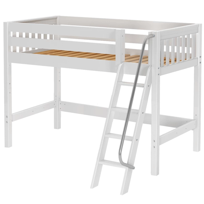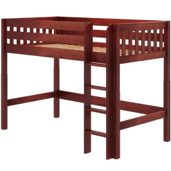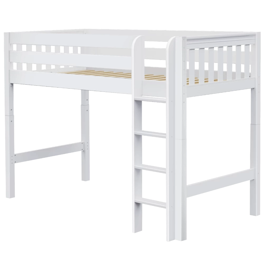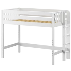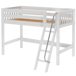 Raised high enough for ample underbed space, but still suitable for younger children and low ceilings, our popular mid loft bed with ladder works for all! Twin XL = standard twin width (42.5”) + additional 4” length (84”). Requires Twin XL mattress.