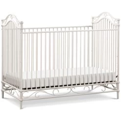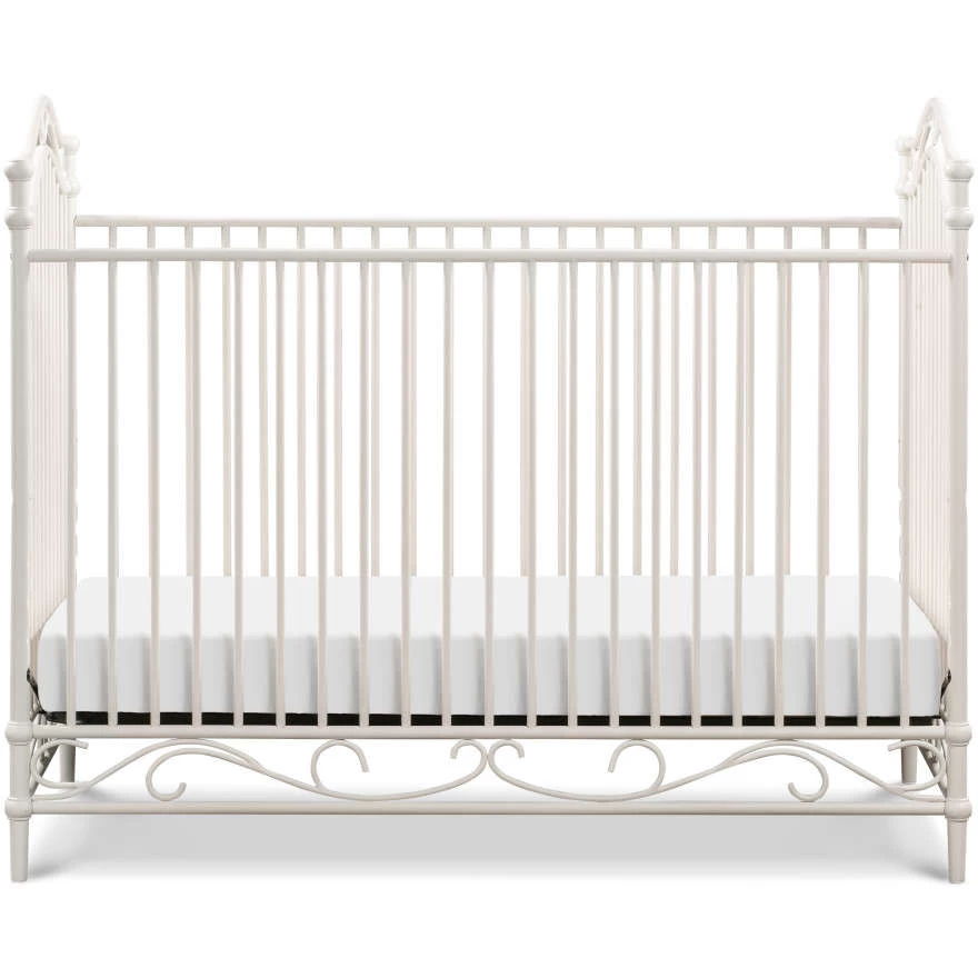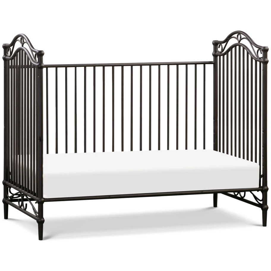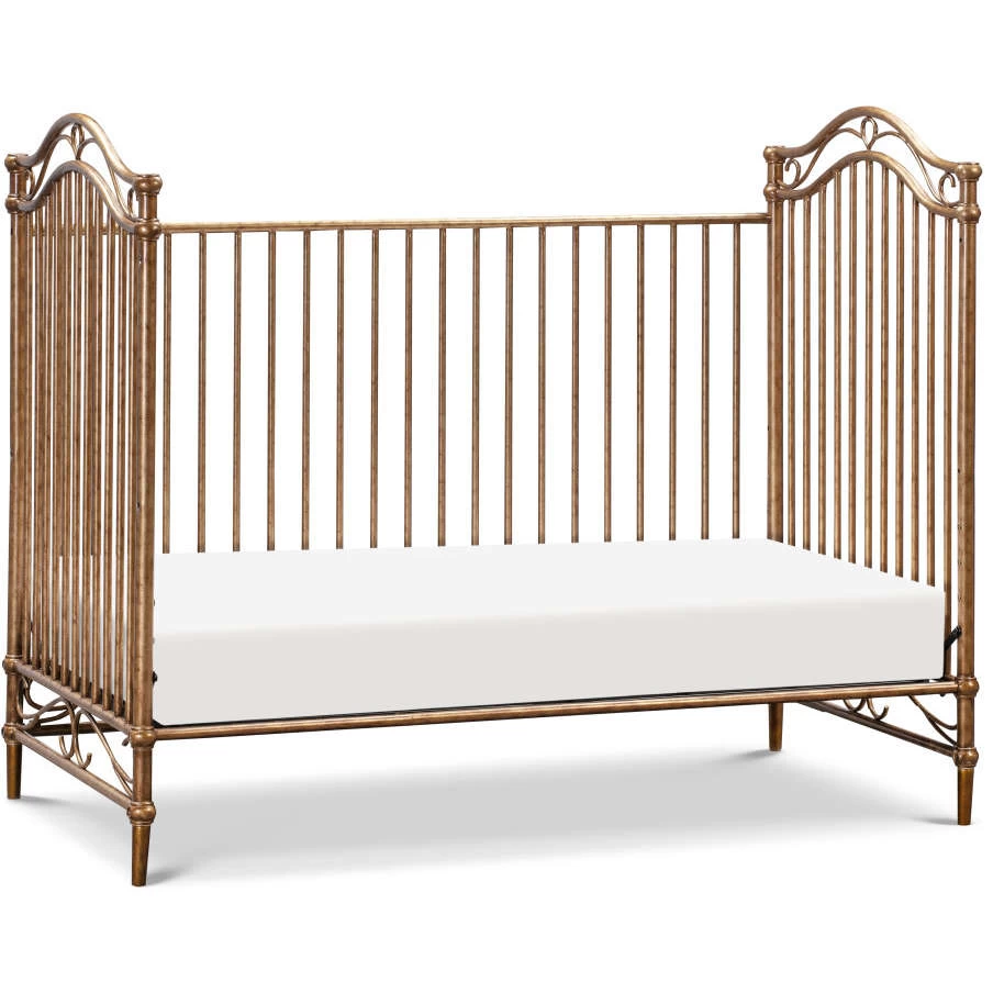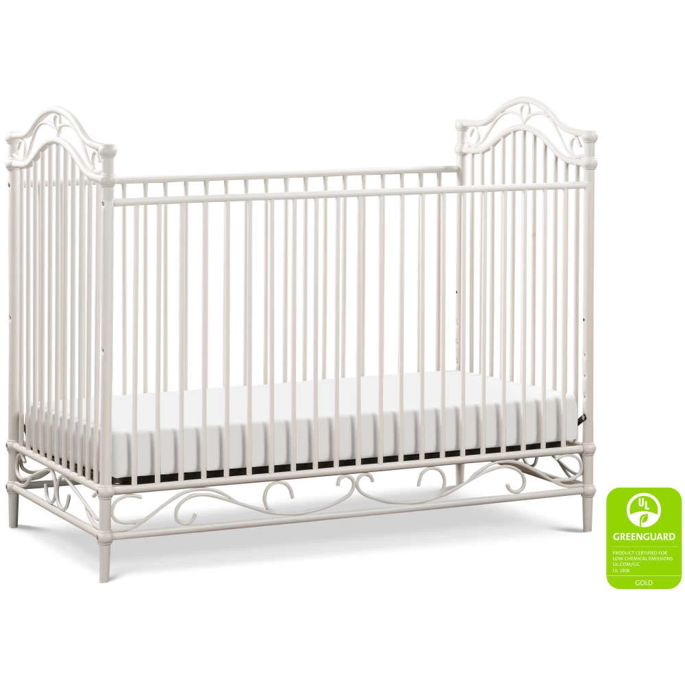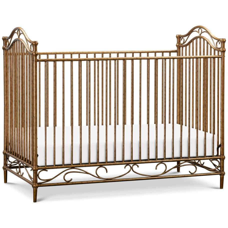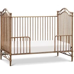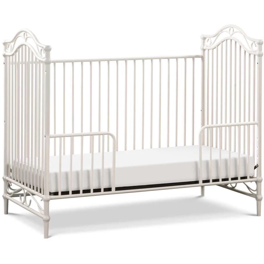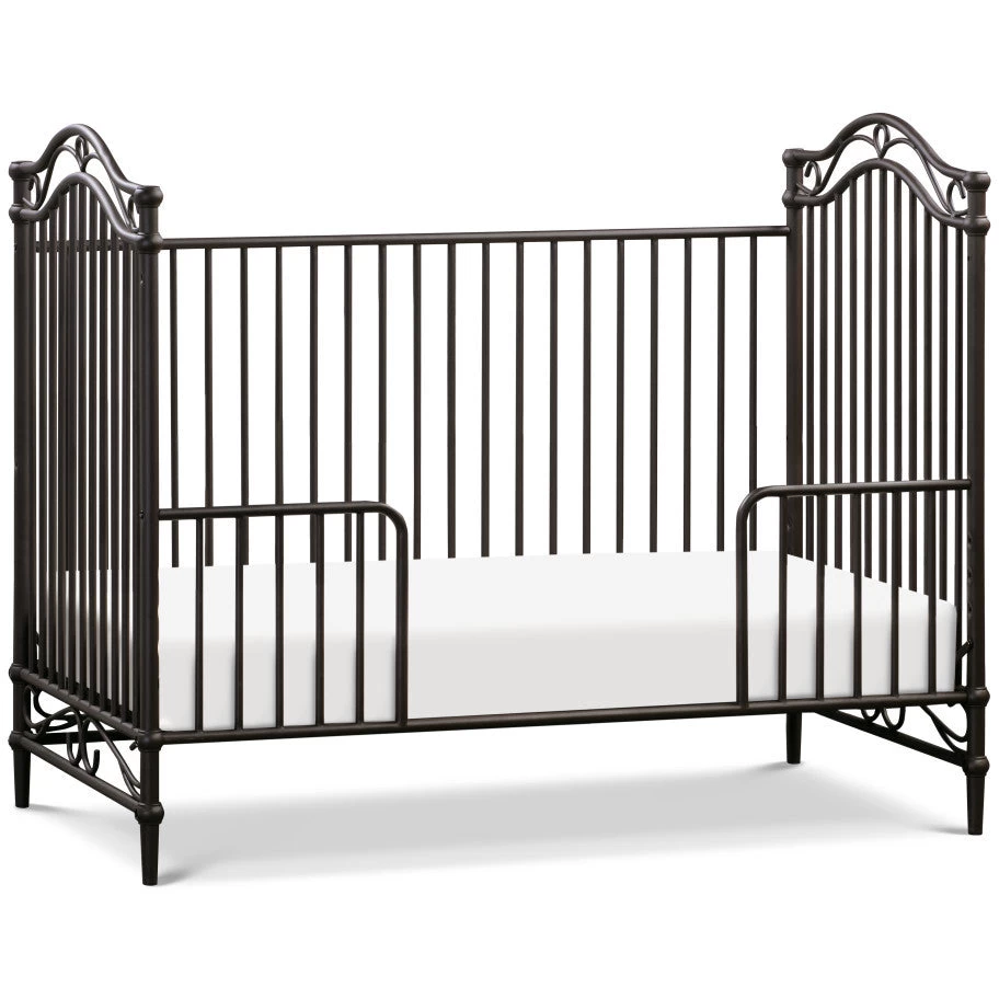 The Camellia 3-in-1 Convertible Crib embodies the royal style and spirit of the French Palace of Versailles with its ornate wrought iron curves, elegant spindles, and delicate silhouette.