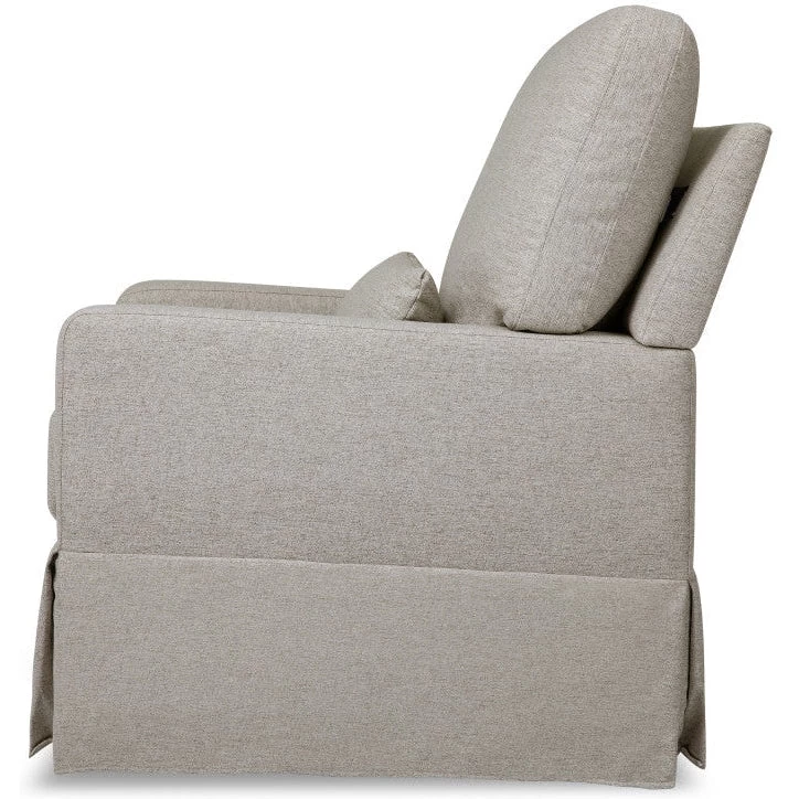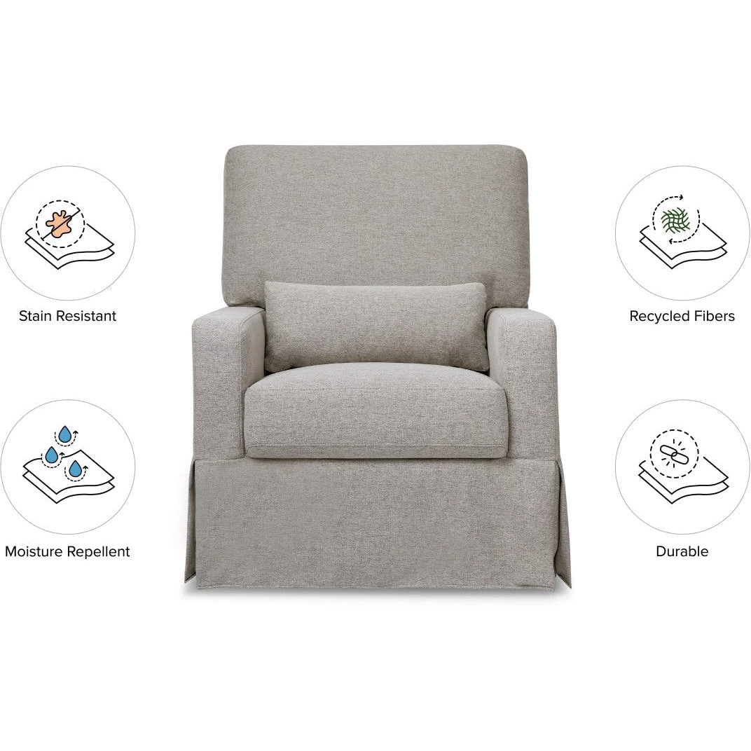 The Crawford Glider offers a modern take on traditional slipcover style and brings nursery comfort to a new level with its plush pillowback design, added lumbar pillow, and wide seat. Its smooth, back-and-forth gliding motion helps you rock your baby to sleep with ease, while the convenient swivel creates an inviting repose for both you and your baby.