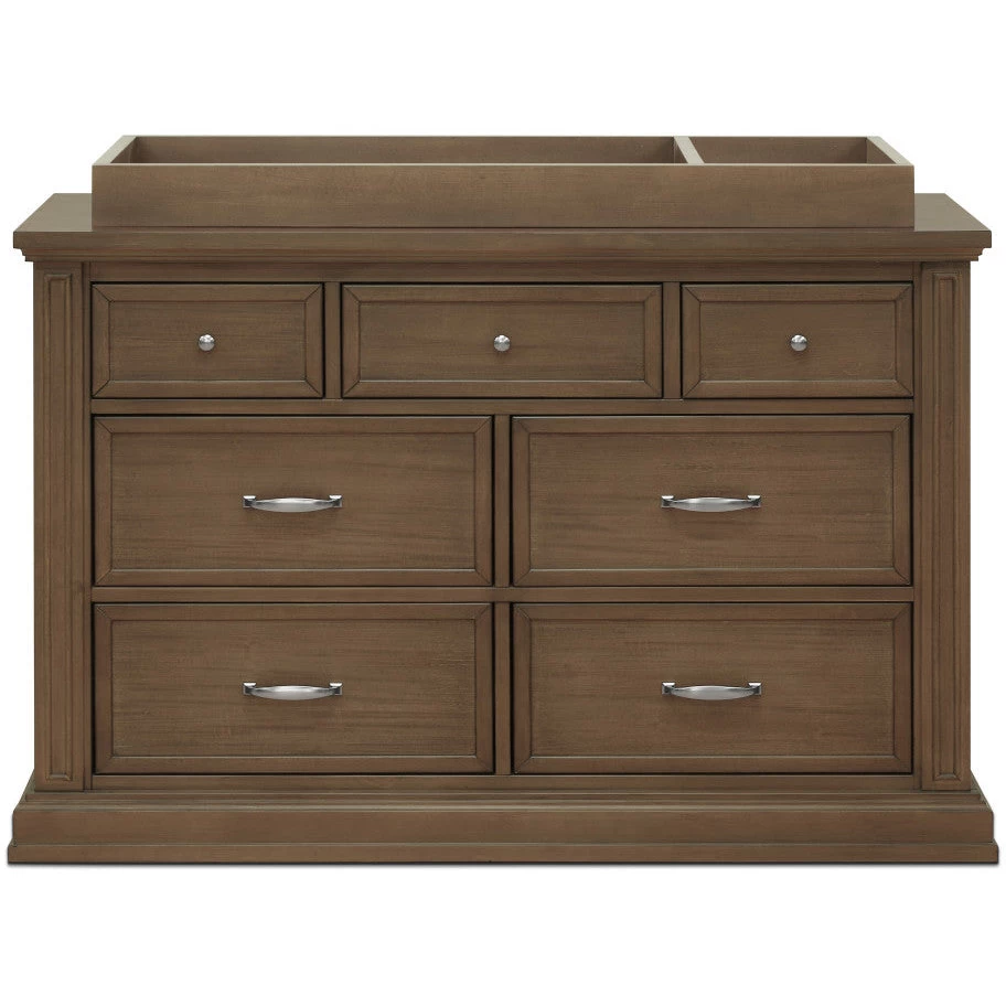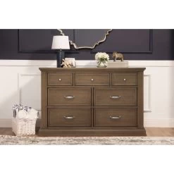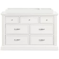 The Durham 7-Drawer Double Dresser combines thoughtfully designed molding with platform detailing, making it a bold complement to the Durham Crib. The dresser’s seven spacious drawers offer a stylized storage solution that will last beyond baby years.