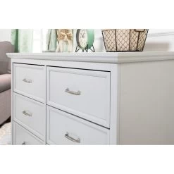 The Foothill Louis 6-Drawer Dresser’s classic style makes it a versatile storage piece intended to accompany the Foothill 4-in-1 Convertible Crib, the Louis 4-in-1 Convertible Crib, and the Lennox 4-in-1 Convertible Crib. With elegant metal handles, refined top and bottom molding and six, spacious drawers, the Foothill-Louis dresser provides practical storage in a sophisticated silhouette.