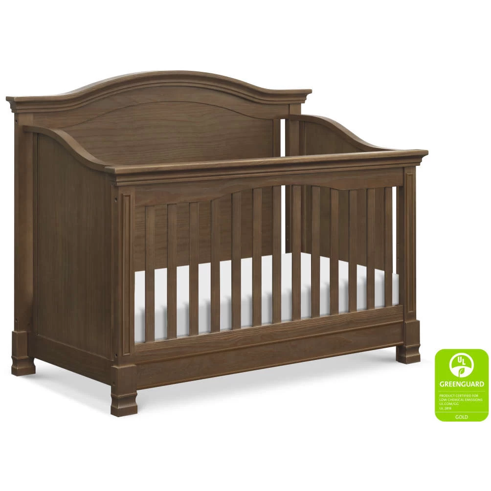 With carved posts and classic arches, the Louis 4-in-1 Convertible Crib exudes heirloom charm. The Louis crib is detailed with a full back-panel, and tailored posts and feet create a structured environment for baby. Available in Espresso or Manor Grey, this elegant crib is a perfect centerpiece for your classic nursery.
