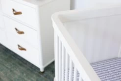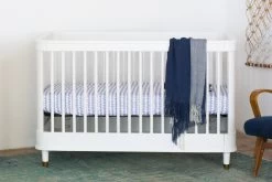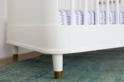 Ease into contemporary style with the Tanner 3-in-1 Crib. Featuring a gently curved silhouette with solid rounded side panels and elegant metal feet accents, the Tanner is an effortlessly transitional piece for the home. Crib converts to a toddler bed and daybed, and fits any standard full-size crib mattress.
