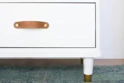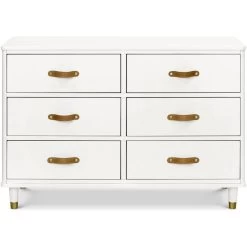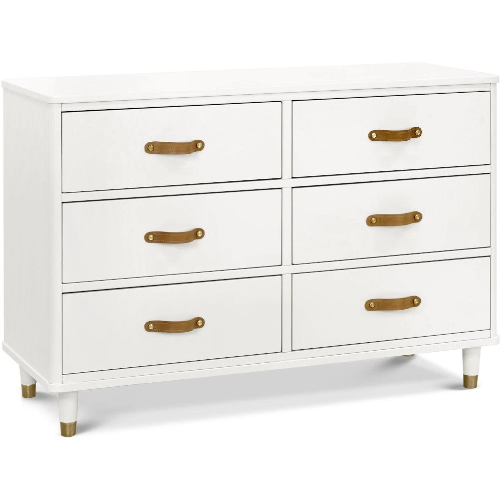 The classic inspired Tanner 6-Drawer Dresser is a contemporary take on a traditional piece. With unique details such as leather handles and elegant bronze metal feet caps, the Tanner is the perfect accent piece for all your storage needs. The six spacious drawers are fully extendable with self-closing, ball-bearing drawer glides.Â
