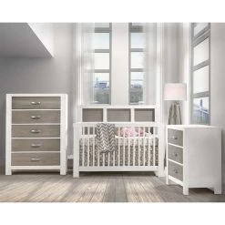 - White pulls on white/natural oak furniture