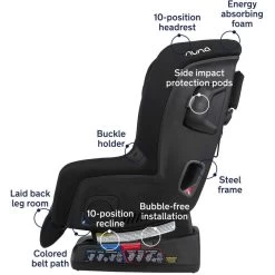 - Laid back legroom gives up to 2 inches more leg room rear facing and extra support for forward facing riders