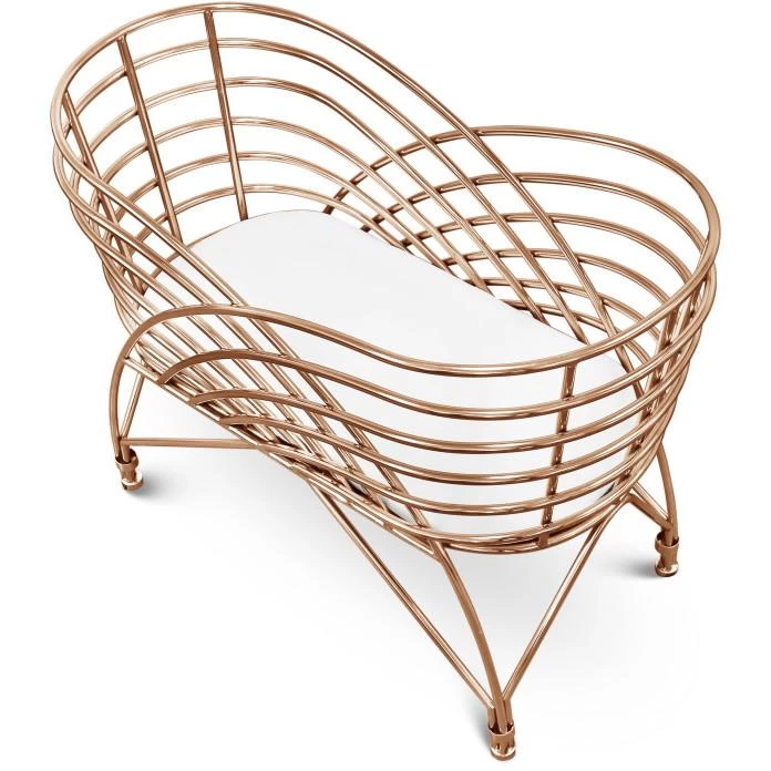 The Aura Bassinet is a modern interpretation of woven rattan furniture. Made of electro-plated, mold-formed, tubular steel, its rails curve and overlap to create Aura’s graceful, enveloping shape. The Aura’s removable wheels with locking casters help keep your baby close during their first few months — no matter where in your home you are.