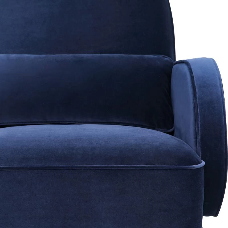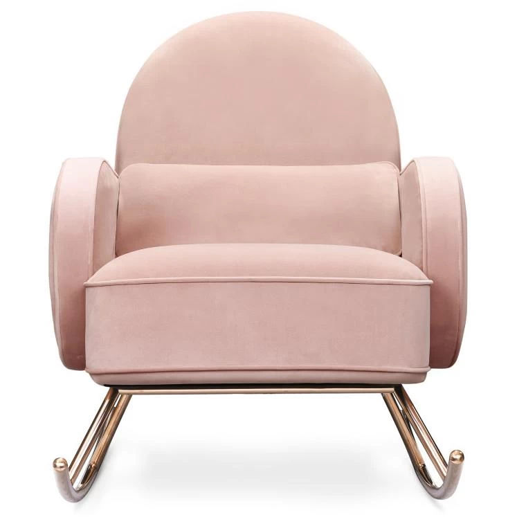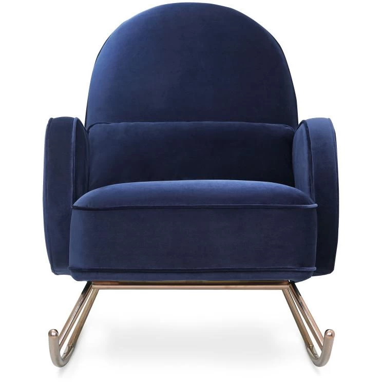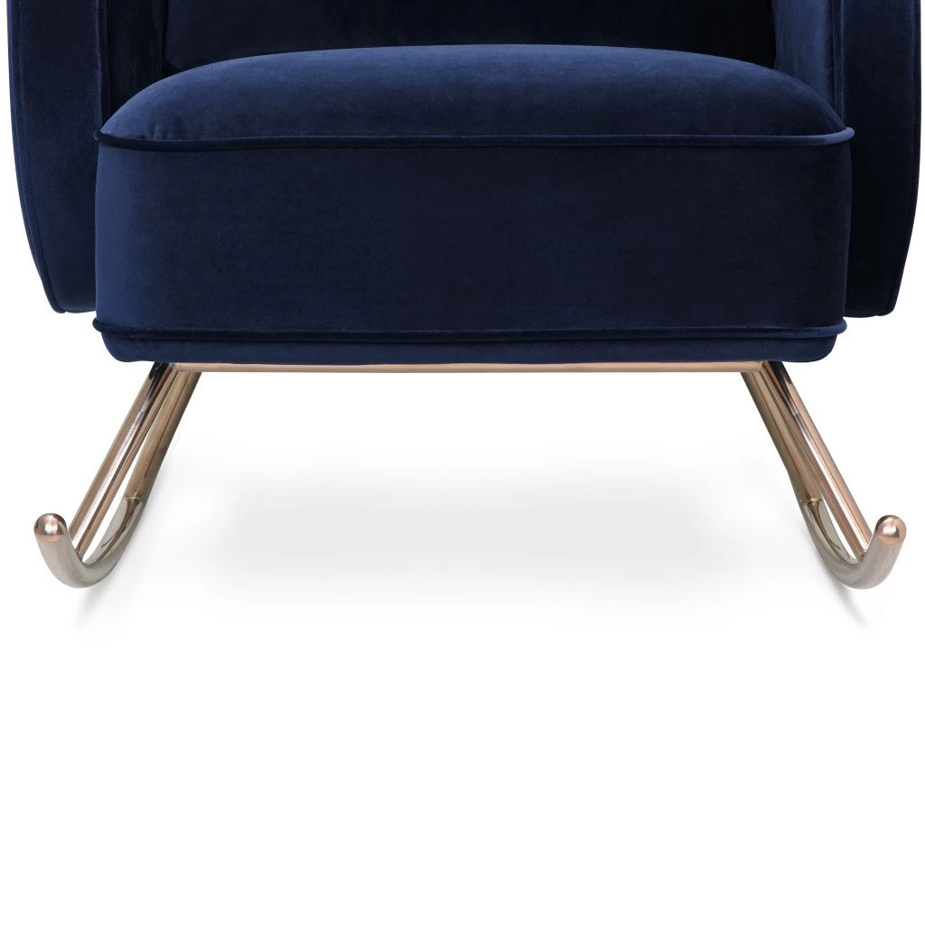 A harmonious balance of rounded volumes rests atop tubular brass runners. The Compass rocker is at once a study in geometry and a place for luxurious repose as its cushions are plush, yet supportive and its metal base ensures a free-flowing, rocking cadence.